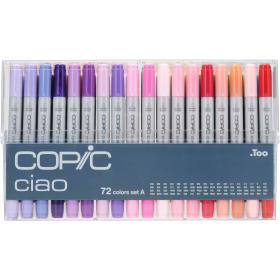 Das Set enthält eine grosse Auswahl der in Design und Illustration üblicherweise verwendeten Grundfarben. Das Set umfasst lebhafte Töne, überblendende Schattierungen und wesentliche Grautöne. Enthält auch einen farblosen Blender (0). Geeignet für alle Erfahrungsstufen. (Eine Kombination aus Copic Ciao 36er Set A und B). Beginne oder erweitere deine Sammlung mit zusammengestellten Sets mit Farbkombinationen, die sich zum Mischen eignen. So kannst du professionelle Ergebnisse zu erzielen. Das Acryl Display sorgt dafür, dass die Marker gut geordnet und für eine einfache Orientierung sichtbar sind. Hiermit wird dir die Planung der perfekten Mischungen und Farbschemata erleichtert. Copic Ciao ist der ideale Grafik-Einstiegsmarker, der mit alkohol- und farbstoffbasierter Tinte in professioneller Qualität hergestellt wird. Sein doppelseitiges Design zeichnet sich durch eine superflexible Spitze sowie eine mittelbreite Spitze für ausdrucksstarke Striche, Tonaufbau, Farbmischungen, Schattierungen, feinere Details, Linien sowie eine grosse, streifenfreie Deckkraft aus. Nachfüllbar, mit austauschbaren Spitzen, ultra-mischbar und mit der höchsten Qualität hergestellt. Enthaltene Farben: C3 (Cool Gray No. 3, 100 (Black), B00 (Frost Blue), B24 (Sky), B29 (Ultra Marine), BG01 (Aqua Blue), BG09 (Blue Green), BG23 (Coral Sea), BV00 (Mauve Shadow), BV02 (Prune), BV08 (Blue Violet), E00 (Cotton Pearl), E21 (Soft Sun), E29 (Burnt Umber), E37 (Sepia), G00 (Jade Green), G05 (Emerald Green), G17 (Forest Green), R20 (Blush), R29 (Lipstick Red), R32 (Peach), RV02 (Sugar Almond Pink), RV04 (Shock Pink), RV10 (Pale Pink), V04 (Lilac), V09 (Violet), V12 (Pale Lilac), Y00 (Barium Yellow), Y06 (Yellow), Y17 (Golden Yellow), YG03 (Yellow Green), YG 06 (Yellowish Green), YG11 (Mignonette), YR02 (Light Orange), YR07 (Cadmium Orange), YR20 (Yellowish Shade), C1 (Cool Gray No. 1), C5 (Cool Gray No. 5), C7 (Cool Gray No. 7), 0 (Colourless Blender), B05 (Process Blue), B23 (Phthalo Blue), B32 (Pale Blue), B39 (Prussian Blue), BG10 (Cool Shadow), BG15 (Aqua), BG93 (Green Gray), BV04 (Blueberry), E02 (Fruit Pink), E04 (Lipstick Natural), E08 (Brown), E33 (Sand), E35 (Chamois), E47 (Dark Brown), E51 (Milky White), G02 (Spectrum Green), G21 (Lime Green), G99 (Olive), R02 (Rose Salmon), R27 (Cadmium Red), R59 (Cardinal), RV21 (Light Pink), RV23 (Pure Pink), RV29 (Crimson), RV42 (Salmon Pink), V17 (Amethyst), Y02 (Canary Yellow), Y08 (Acid Yellow), YG41 (Pale Cobalt Green), YG67 (Moss), YR00 (Powder Pink), YR04 (Chrome Orange).