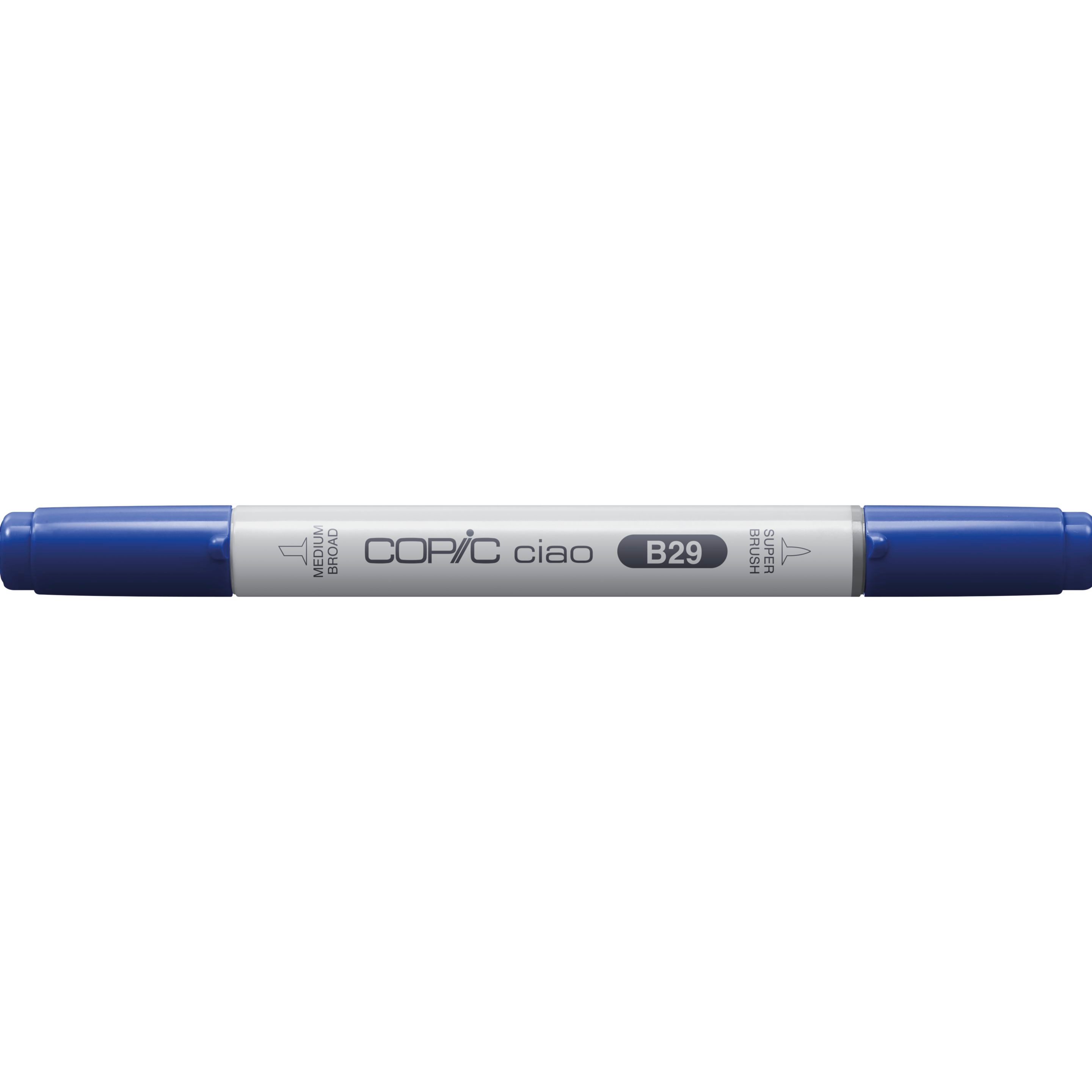 Copic Ciao Marker B29, der preisgünstige, doppelseitige Allround-Marker in 180 Farben. Der Copic Ciao bietet Newcomern viele Produktvorteile, die bereits den Copic classic und den Copic Sketch aus dem Profilager ausgezeichnet haben. Ausgestattet mit einer universell einsetzbaren, mittelbreiten Spitze, verfügt er ausserdem über eine flexible Pinselspitze. Mit dieser können weiche Striche mit interessanten Modulationen erzielt werden. Der Ciao Marker ist daher für Modedesign und Kalligrafie, zum Skizzieren, Scribblen und Layouten perfekt einsetzbar. Insbesondere Hobbykünstler & Mangaka bevorzugen den Copic Ciao, u.a. zum Kolorieren von Scrapbookings, Stempelkunst und handgemachten Karten. Die eingefärbten Kappen ermöglichen eine schnelle und exakte Identifizierung der Farbtöne. Die 180 leuchtenden Farben auf Alkoholbasis sind toxikologisch unbedenklich und nahezu geruchlos. Die Tinte trocknet schnell, verwischt nicht und kann auf der Fläche gemischt und übereinandergelegt werden. Alle erhältlichen 180 Farben können mit Copic Ink farbidentisch wieder aufgefüllt werden. Mit einer einzigen Nachfüll-Flasche kann der Marker 9 x wieder aufgefüllt werden. Das garantiert ein optimales Kosten-Nutzen-Verhältnis, ist umweltfreundlich und wirtschaftlich.