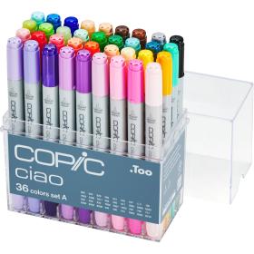 Die ultimative Kollektion mit weichen, warmen Farben. Empfohlen für Anwender, die die Misch- oder Gradationstechniken verbessern möchten. Die gesamte Palette der 180 Copic Ciao-Farben wird vollständig, wenn du die 36 Sets A, B, C, D und E kombinierst. Beginne oder erweitere deine Sammlung mit zusammengestellten Sets mit Farbkombinationen, die sich zum Mischen eignen. So kannst du professionelle Ergebnisse zu erzielen. Das Acryl Display sorgt dafür, dass die Marker gut geordnet und für eine einfache Orientierung sichtbar sind. Hiermit wird dir die Planung der perfekten Mischungen und Farbschemata erleichtert. Copic Ciao ist der ideale Grafik-Einstiegsmarker, der mit alkohol- und farbstoffbasierter Tinte in professioneller Qualität hergestellt wird. Sein doppelseitiges Design zeichnet sich durch eine superflexible Spitze sowie eine mittelbreite Spitze für ausdrucksstarke Striche, Tonaufbau, Farbmischungen, Schattierungen, feinere Details, Linien sowie eine grosse, streifenfreie Deckkraft aus. Nachfüllbar, mit austauschbaren Spitzen, ultra-mischbar und mit der höchsten Qualität hergestellt. Enthaltene Farben: C1 (Cool Gray No. 1), C5 (Cool Gray No. 5), C7 (Cool Gray No. 7), 0 (Colourless Blender), B05 (Process Blue), B23 (Phthalo Blue), B32 (Pale Blue), B39 (Prussian Blue), BG10 (Cool Shadow), BG15 (Aqua), BG93 (Green Gray), BV04 (Blueberry), E02 (Fruit Pink), E04 (Lipstick Natural), E08 (Brown), E33 (Sand), E35 (Chamois), E47 (Dark Brown), E51 (Milky White), G02 (Spectrum Green), G21 (Lime Green), G99 (Olive), R02 (Rose Salmon), R27 (Cadmium Red), R59 (Cardinal), RV21 (Light Pink), RV23 (Pure Pink), RV29 (Crimson), RV42 (Salmon Pink), V17 (Amethyst), Y02 (Canary Yellow), Y08 (Acid Yellow), YG41 (Pale Cobalt Green), YG67 (Moss), YR00 (Powder Pink), YR04 (Chrome Orange).