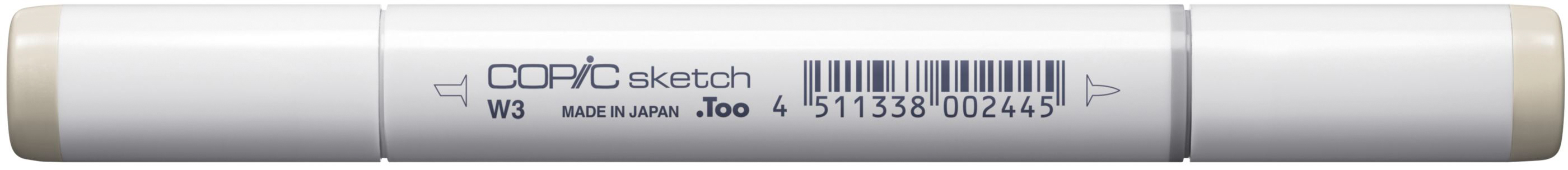 Copic Sketch Marker W3. Professioneller Pinselmarker Copic Sketch in 358 Farben (+ neutralem Blender). Ausgestattet mit einer speziell entwickelten "Super Brush"-Spitze und einer "Medium Broad"-Spitze. (Spitzen austauschbar.) Ideal für Scribbles, Layouts, Storyboards, Illustrationen, Skizzen, Modedesigns und Kalligrafien. Auch im Hobbybereich für Comic- & Mangazeichnungen, Stempelkunst & Scrapbooking sowie für alle Anwender, die einem Pinselmarker den Vorzug geben. Der Copic Sketch ist einsteckbar in das Copic Airbrushing-Layoutsystem. Die Tinte ist identisch mit der des klassischen Copic Markers: Auf Alkoholbasis, toxikologisch unbedenklich und nahezu geruchlos. Sie trocknet schnell und verwischt nicht. Alle erhältlichen 358 Farben können mit Copic Ink farbidentisch wieder aufgefüllt werden. Mit einer einzigen Nachfüll-Flasche kann der Copic Sketch Marker 7 x wieder aufgefüllt werden. Das garantiert ein optimales Kosten-Nutzen-Verhältnis, ist umweltfreundlich und wirtschaftlich.