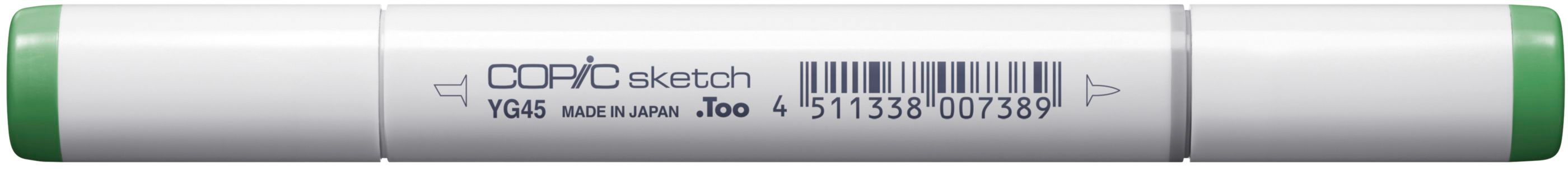 Copic Sketch Marker, YG45. Professioneller Pinselmarker Copic Sketch in 358 Farben (+ neutralem Blender). Ausgestattet mit einer speziell entwickelten "Super Brush"-Spitze und einer "Medium Broad"-Spitze. (Spitzen austauschbar.) Ideal für Scribbles, Layouts, Storyboards, Illustrationen, Skizzen, Modedesigns und Kalligrafien. Auch im Hobbybereich für Comic- & Mangazeichnungen, Stempelkunst & Scrapbooking sowie für alle Anwender, die einem Pinselmarker den Vorzug geben. Der Copic Sketch ist einsteckbar in das Copic Airbrushing-Layoutsystem. Die Tinte ist identisch mit der des klassischen Copic Markers: Auf Alkoholbasis, toxikologisch unbedenklich und nahezu geruchlos. Sie trocknet schnell und verwischt nicht. Alle erhältlichen 358 Farben können mit Copic Ink farbidentisch wieder aufgefüllt werden. Mit einer einzigen Nachfüll-Flasche kann der Copic Sketch Marker 7 x wieder aufgefüllt werden. Das garantiert ein optimales Kosten-Nutzen-Verhältnis, ist umweltfreundlich und wirtschaftlich.