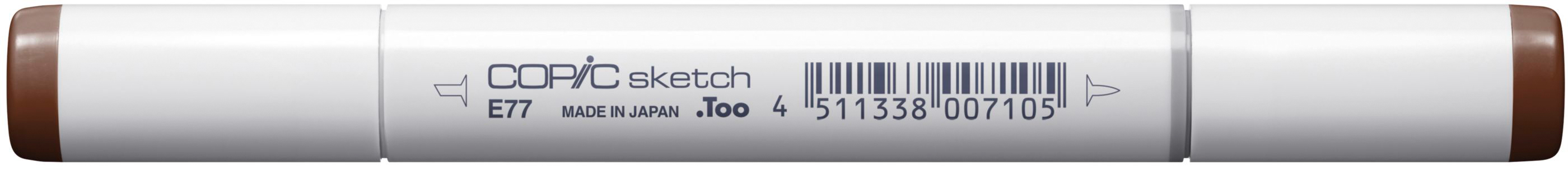 Copic Sketch Marker, E77. Professioneller Pinselmarker Copic Sketch in 358 Farben (+ neutralem Blender). Ausgestattet mit einer speziell entwickelten "Super Brush"-Spitze und einer "Medium Broad"-Spitze. (Spitzen austauschbar.) Ideal für Scribbles, Layouts, Storyboards, Illustrationen, Skizzen, Modedesigns und Kalligrafien. Auch im Hobbybereich für Comic- & Mangazeichnungen, Stempelkunst & Scrapbooking sowie für alle Anwender, die einem Pinselmarker den Vorzug geben. Der Copic Sketch ist einsteckbar in das Copic Airbrushing-Layoutsystem. Die Tinte ist identisch mit der des klassischen Copic Markers: Auf Alkoholbasis, toxikologisch unbedenklich und nahezu geruchlos. Sie trocknet schnell und verwischt nicht. Alle erhältlichen 358 Farben können mit Copic Ink farbidentisch wieder aufgefüllt werden. Mit einer einzigen Nachfüll-Flasche kann der Copic Sketch Marker 7 x wieder aufgefüllt werden. Das garantiert ein optimales Kosten-Nutzen-Verhältnis, ist umweltfreundlich und wirtschaftlich.