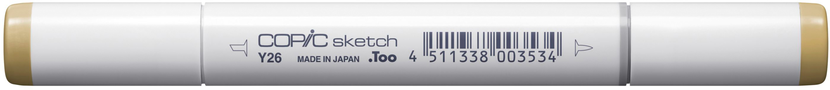 Copic Sketch Marker, Y26. Professioneller Pinselmarker Copic Sketch in 358 Farben (+ neutralem Blender). Ausgestattet mit einer speziell entwickelten "Super Brush"-Spitze und einer "Medium Broad"-Spitze. (Spitzen austauschbar.) Ideal für Scribbles, Layouts, Storyboards, Illustrationen, Skizzen, Modedesigns und Kalligrafien. Auch im Hobbybereich für Comic- & Mangazeichnungen, Stempelkunst & Scrapbooking sowie für alle Anwender, die einem Pinselmarker den Vorzug geben. Der Copic Sketch ist einsteckbar in das Copic Airbrushing-Layoutsystem. Die Tinte ist identisch mit der des klassischen Copic Markers: Auf Alkoholbasis, toxikologisch unbedenklich und nahezu geruchlos. Sie trocknet schnell und verwischt nicht. Alle erhältlichen 358 Farben können mit Copic Ink farbidentisch wieder aufgefüllt werden. Mit einer einzigen Nachfüll-Flasche kann der Copic Sketch Marker 7 x wieder aufgefüllt werden. Das garantiert ein optimales Kosten-Nutzen-Verhältnis, ist umweltfreundlich und wirtschaftlich.