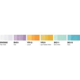 Mit den 6er Copic Sketch Skizzen-Sets kannst du ganz einfach mit dem Aufbau deiner Markersammlung starten. Sorgfältig ausgewählte Farben, die in Mischungen oder ergänzenden Tönen zusammengestellt sind, erleichtern dir die Farbenwahl. Enthaltene Farben: BG11, BG15, BV0000, BV01, YR12, YR31.