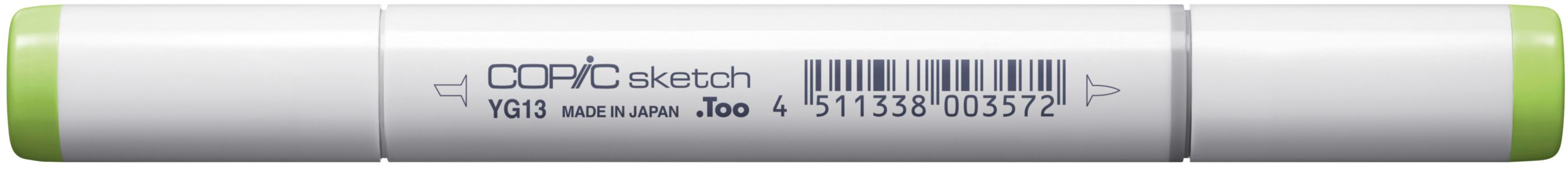 Copic Sketch Marker, YG13. Professioneller Pinselmarker Copic Sketch in 358 Farben (+ neutralem Blender). Ausgestattet mit einer speziell entwickelten "Super Brush"-Spitze und einer "Medium Broad"-Spitze. (Spitzen austauschbar.) Ideal für Scribbles, Layouts, Storyboards, Illustrationen, Skizzen, Modedesigns und Kalligrafien. Auch im Hobbybereich für Comic- & Mangazeichnungen, Stempelkunst & Scrapbooking sowie für alle Anwender, die einem Pinselmarker den Vorzug geben. Der Copic Sketch ist einsteckbar in das Copic Airbrushing-Layoutsystem. Die Tinte ist identisch mit der des klassischen Copic Markers: Auf Alkoholbasis, toxikologisch unbedenklich und nahezu geruchlos. Sie trocknet schnell und verwischt nicht. Alle erhältlichen 358 Farben können mit Copic Ink farbidentisch wieder aufgefüllt werden. Mit einer einzigen Nachfüll-Flasche kann der Copic Sketch Marker 7 x wieder aufgefüllt werden. Das garantiert ein optimales Kosten-Nutzen-Verhältnis, ist umweltfreundlich und wirtschaftlich.