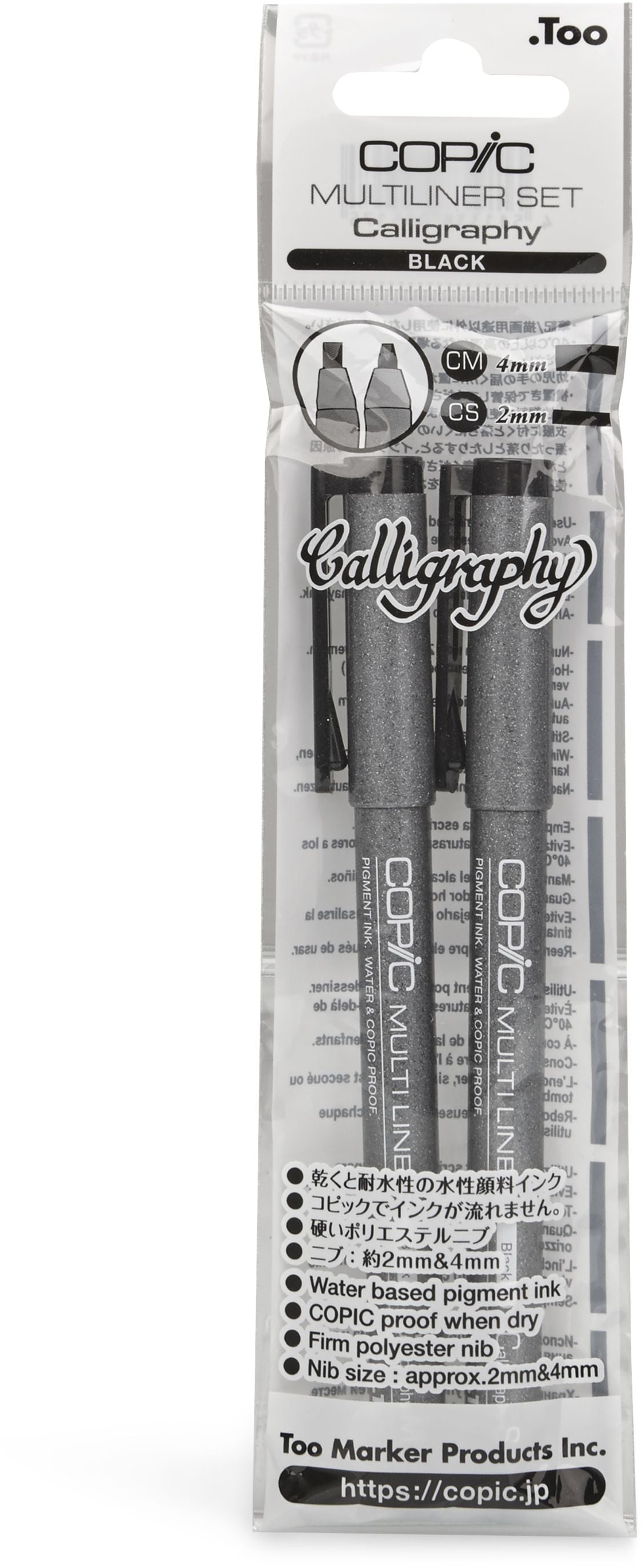 Set mit 2 x Multiliner Calligraphy mit Keilspitze (2 mm + 2 mm). Mit wasserfester, hoch lichtbeständiger Pigmenttusche. Variabel zwischen dünnem und breitem Linienauftrag ist er ideal für: Kalligrafisches Schreiben, Zeichnen, Lettern sowie für persönliche Unterschriften. Für Skizzen, Zeichnungen, Layouts, Modezeichnungen, Illustrationen, Grusskarten, Urkunden etc. Selbst bei mehrmaligem Übermalen mit Copic oder anderen Alkoholmarkern bleibt der gezeichnete Strich scharf und blutet nicht aus.