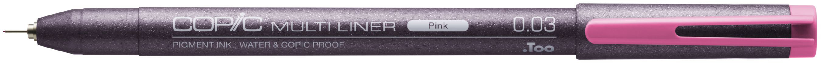 Copic Multiliner pink, 0.03 mm. Für Strichzeichnungen, zum Skizzieren und Vorzeichnen. Die vier feinsten Strichstärken (0,05 mm, 0,1 mm, 0,3 mm + 0,5 mm) stehen in 9 weiteren Farben zur Verfügung: lavender, brown, pink, cool grey, warm grey, sepia, olive, wine + cobalt. Die Fineliner mit einer wasserfesten Pigmenttusche wurden speziell auf das Copic Markersystem abgestimmt. Vorzeichnungen bluten auch nach mehrmaligem Übermalen nicht aus. Die Linien der Multiliner garantieren auf Grund ihrer Schärfe hervorragende Reproduktions-Eigenschaften, unabhängig ob sie mit Markern, oder nur zum Skizzieren eingesetzt werden. Gezeichnetes ist ausserdem kopier- und wischfest sowie resistent gegen UV-Licht.