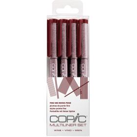 Copic Multiliner in wine, 4 Stk. in den feinen Strichstärken sortiert (0,05 mm, 0,1 mm, 0,3 + 0,5 mm.) Für Strichzeichnungen, zum Skizzieren und Vorzeichnen. Die Fineliner mit einer wasserfesten Pigmenttusche wurden speziell auf das Copic Markersystem abgestimmt. Vorzeichnungen bluten auch nach mehrmaligem Übermalen nicht aus. Die Linien der Multiliner garantieren auf Grund ihrer Schärfe hervorragende Reproduktions-Eigenschaften, unabhängig ob sie mit Markern, oder nur zum Skizzieren eingesetzt werden. Gezeichnetes ist ausserdem kopier- und wischfest sowie resistent gegen UV-Licht.