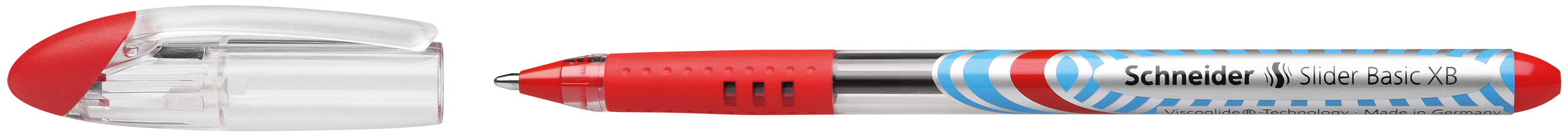 Kugelschreiber mit Viscoglide-Technologie für aussergewöhnlich leichtes und gleitendes Schreiben. Die Schrift trocknet schnell - auch auf glattem Papier - und bleibt sogar bei anschliessendem Markieren mit Textmarkern wischfest. Schlankes Design in Transparent-Optik mit attraktivem Schaftdekor und umsteckbarer Clip-Kappe. Das gummierte Griffprofil ermöglicht eine sichere und entspannte Schreibhaltung. Die verschleissfeste Edelstahlspitze garantiert, dass der grosse Tintenvorrat vollständig und schmierfrei genutzt werden kann. Der Slider Basic wird CO2-neutral hergestellt.