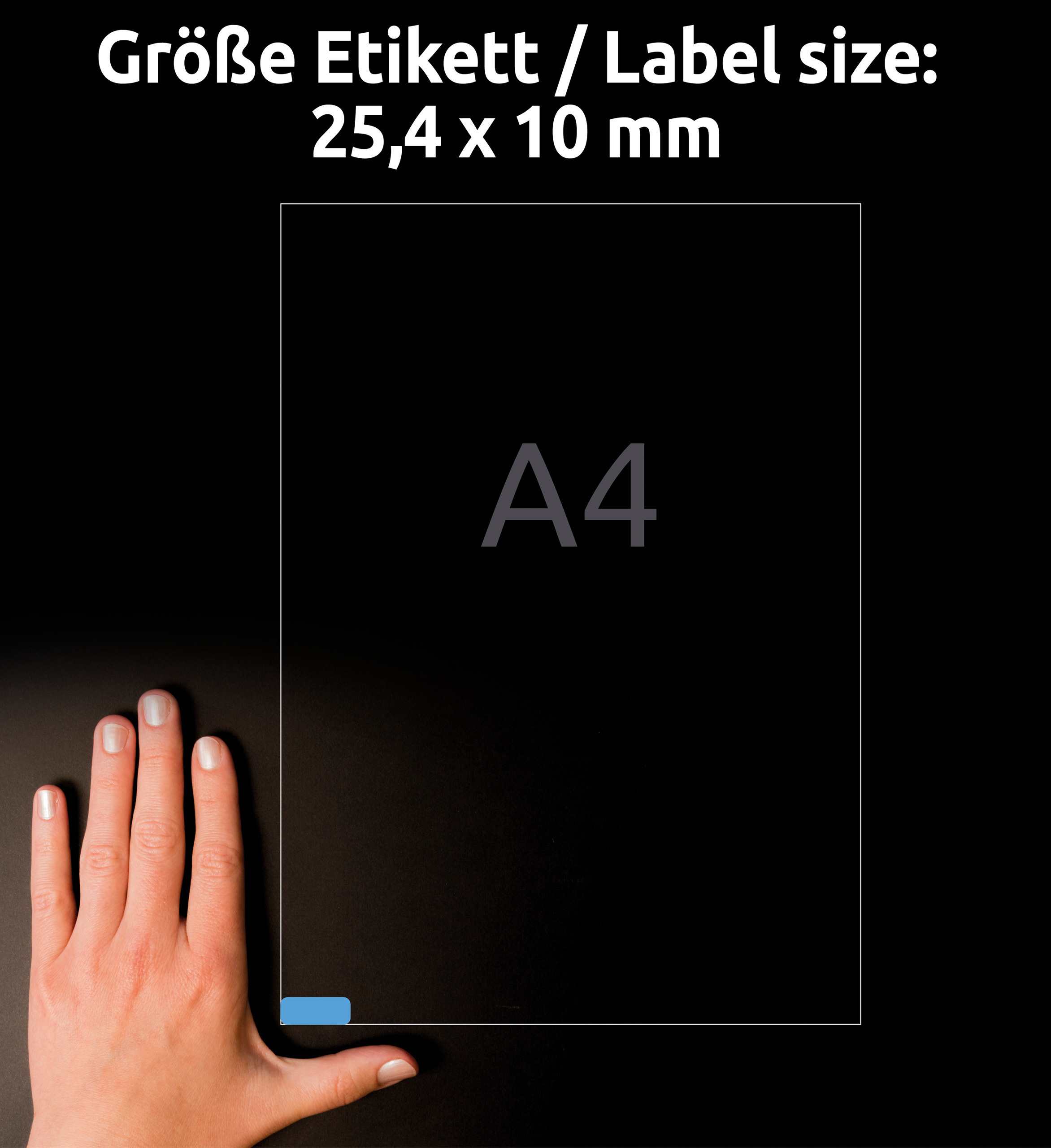 Qualität vom Etiketten-Experten: die blauen, ablösbaren Etiketten L6048-20 im Format 25,4 x 10 mm von Avery Zweckform eignen sich z.B. zum temporären farbigen Beschriften von Unterlagen und Ablagen. 3.780 Etiketten auf 20 Bogen. Farbige Etiketten für jeden Bedarf mit einem gestochen scharfen Druckbild ohne Verwischen durch beste Toner- und Tintenverankerung. Sie können sich auf einen absolut staufreien Druckerdurchlauf ohne Klebstoffablagerungen im Drucker verlassen. Geeignet für alle Laser- und Inkjet-Drucker. So arbeiten Sie effizient wie stressfrei und schaffen sich wertvolle Zeit für die wirklich wichtigen Dinge. Ideen drucken, einfach & professionell: mit Etiketten von Avery Zweckform können Sie den kostenlosen Online Etiketten-Designer unter www.avery.eu/print nutzen. Gestalten Sie Ihr Etikett mit der Software komplett selbst, verwenden Sie eine der Design-Vorlagen zu zahlreichen Themen, die Sie individuell anpassen können oder laden Sie Ihr fertiges Design hoch und drucken anschliessend standgenau aus. So schnell und einfach sorgen Sie für einen professionellen Auftritt. Think & Care - Avery Zweckform ist seit 2020 klimaneutral: die Treibhausgasemissionen des Standortes werden durch zertifizierte Klimaschutzprojekte ausgeglichen. Schon seit 2014 wird ausschliesslich Ökostrom/-gas verwendet. Forschung, Entwicklung, Produktion, Logistik und Verwaltung am Firmenstandort in Oberlaindern/Bayern garantieren höchste Qualitäts- und Umweltstandards sowie kurze Lieferwege. Das Obermaterial dieser chlorfrei gebleichten Etiketten wird zu 100% aus FSC®-zertifiziertem Papier aus verantwortungsvoll bewirtschafteten Wäldern hergestellt.