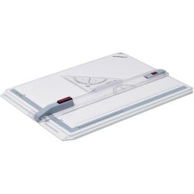 Erstklassiges, voll ausgestattetes Zeichenbrett mit L-System und geradlinigem Design. Robustes Brett aus unzerbrechlichem, verzugsfreiem Material. Ein paralleles Lineal mit Stop-and-Go-Mechanismus. Zwei magnetische Klemmstreifen.
