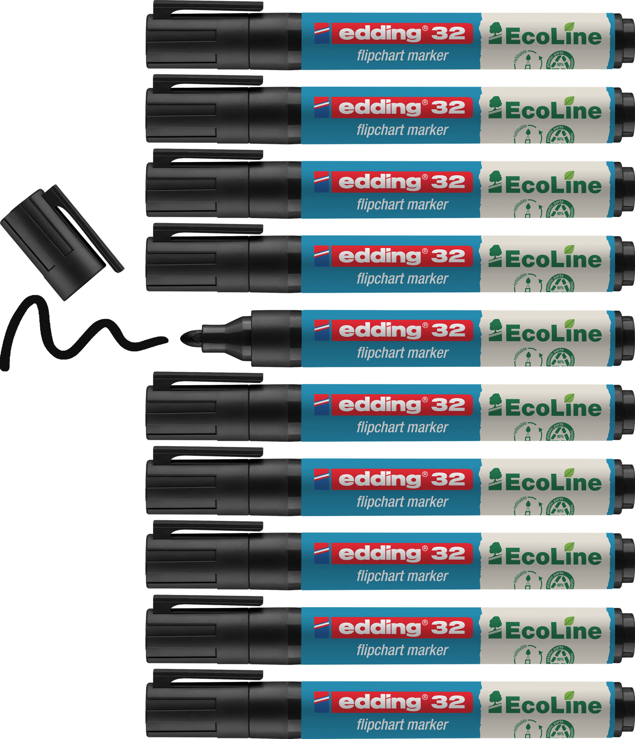 Der edding 31 flipchart marker mit Rundspitze ist ideal für das Arbeiten am Flipchart und dank einer hohen Cap-Off-Zeit auch nach vorübergehend offener Lagerung noch einsatzfähig. Durch die Verwendung von überwiegend recyceltem post-consumer Material ist der edding 31 besonders nachhaltig.