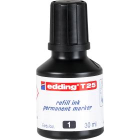 Die edding T25 Nachfülltinte mit praktischem Tropfendosiersystem eignet sich ideal zum schnellen Nachfüllen zahlreicher Permanentmarker-Modelle – darunter die Serien No.1, 370, 390, 400, 500, 550, 800, 850, 2000 C, 2200 C, 3000, 3300 sowie die edding EcoLine Marker 21, 22 und 25 – und ist in einer 30-ml-Flasche in zehn Farben erhältlich (schwarz, rot, blau, grün, gelb, orange, braun, violett, pink und hellblau), ganz ohne Zusatz von Xylol und Toluol.