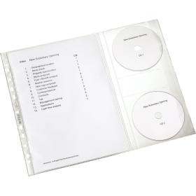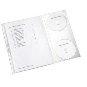 Prospekthülle mit Seitenklappe für zwei CDs. Die Universal-Lochung ermöglicht eine bequeme Ablage in Ordnern und Ringbüchern. Ideal zur gemeinsamen Ablage von Unterlagen mit dazugehörigen CDs (z.B. Lizenzverträge plus Software).