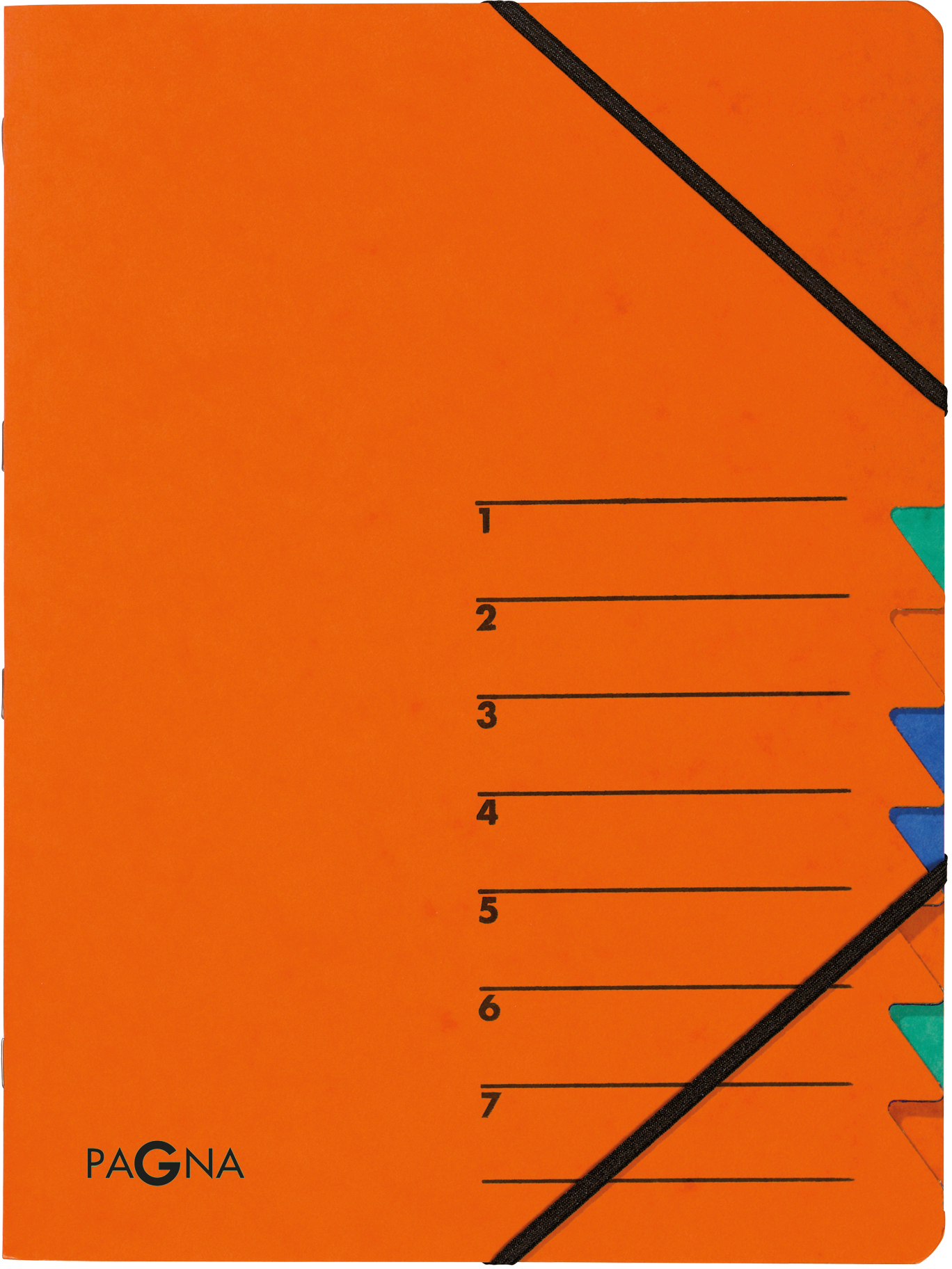 Ordnungsmappe, für Dokumente im Format A4, 7 Fächer, Easy aus strapazierfähigem Pressspan, mit schwarzem Eckspanngummi, buntem Griffregister für schnellen Zugriff auf Unterlagen, Aufdruck 1-7 auf dem Deckel, individuell beschriftbar