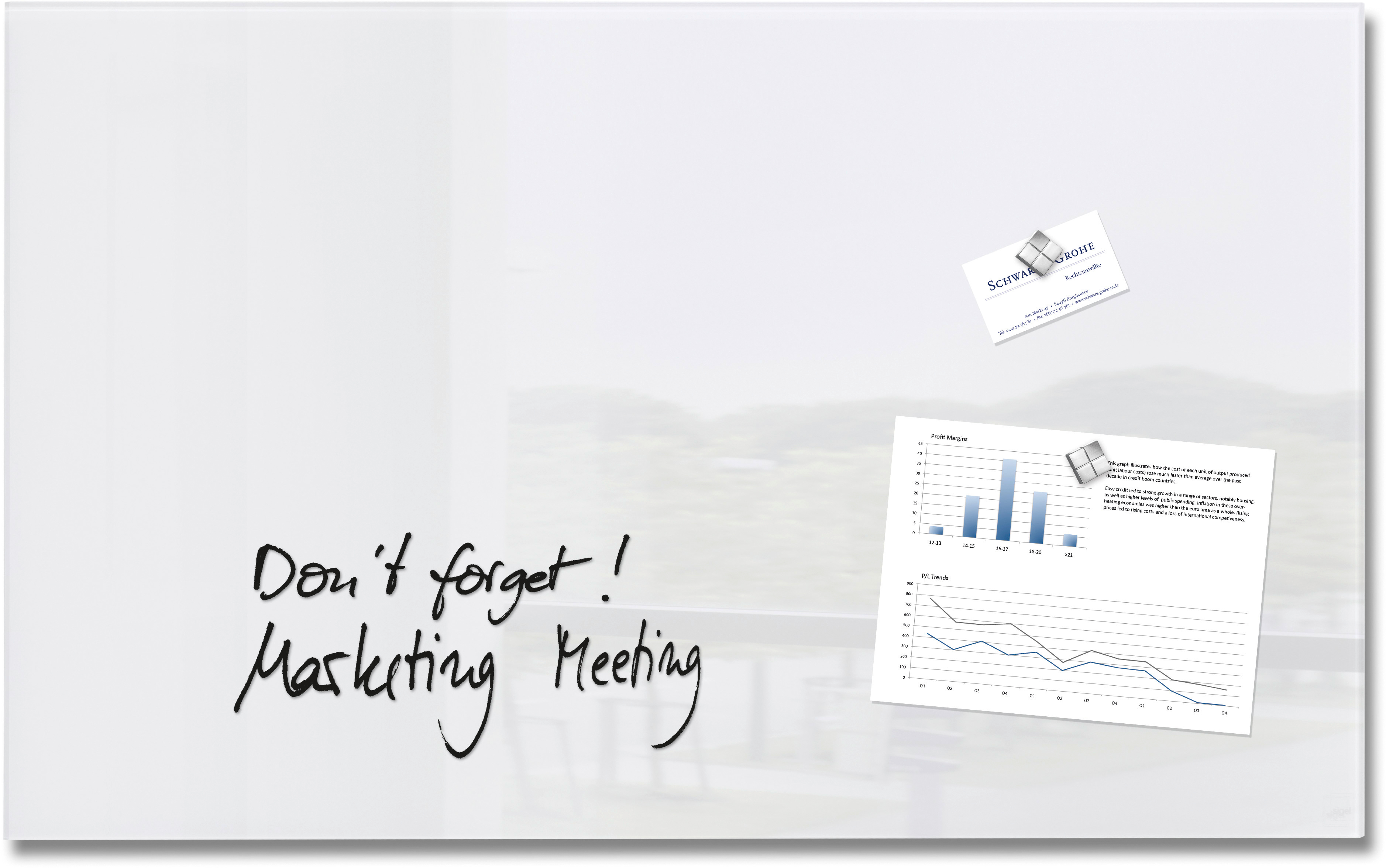 Hochglänzendes, designprämiertes Glas-Magnetboard artverum®. Magnethaftend mit SuperDym-/Neodym-Magneten und mit Sigel Markern optimal beschreibbar. Gefertigt aus Sicherheitsglas (ESG, EN 12150-1). Die rahmenlose Aufhängung lässt das Glas-Magnetboard frei vor der Wand schweben. Die TÜV- und GS-geprüfte Produktsicherheit und die TÜV-geprüfte Aufhängung sorgen für einen sicheren Halt im Hoch- und Querformat. Sigel gewährt 25 Jahre Garantie auf die Glasoberfläche bei Verwendung von Sigel-Zubehör.