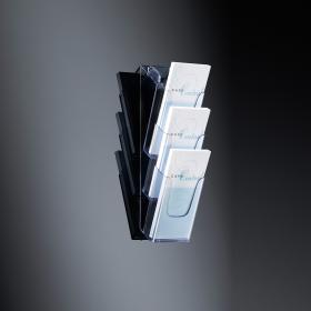 Wand-Prospekthalter aus hochwertigem, glasklarem, 2,0 mm starkem Acryl vereint die optischen Vorteile von Glas mit der Bruchsicherheit eines Kunststoffes. Dies sorgt für hohe Stabilität. 25 Jahre Garantie auf die UV-Beständigkeit des Acryls. Die schräge Bodenfläche sorgt dafür, dass die Prospekte nach vorne rutschen und somit leichter entnehmbar sind. Die Wand-Prospekthalter können mit einem Steckmechanismus untereinander verbunden werden.