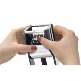 Selbstfärbender Stempel mit Datum und 12 wählbaren gebräuchlichen Begriffen in einer Zeile.