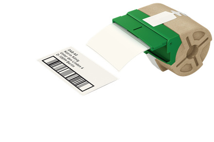 Intelligente Etikettenkartusche mit permanent haftenden Etiketten. Papier Material. Kein Papierstau oder Verschwendung eines ganzen Etikettenbogens, um nur ein Etikett zu drucken. Kassette mit integriertem Chip für die Kommunikation mit dem Drucker: zeigt den Etikettentyp und die Restanzahl an Etiketten an, für kleine und grosse Post- und Warensendungen, für Seriendruck.