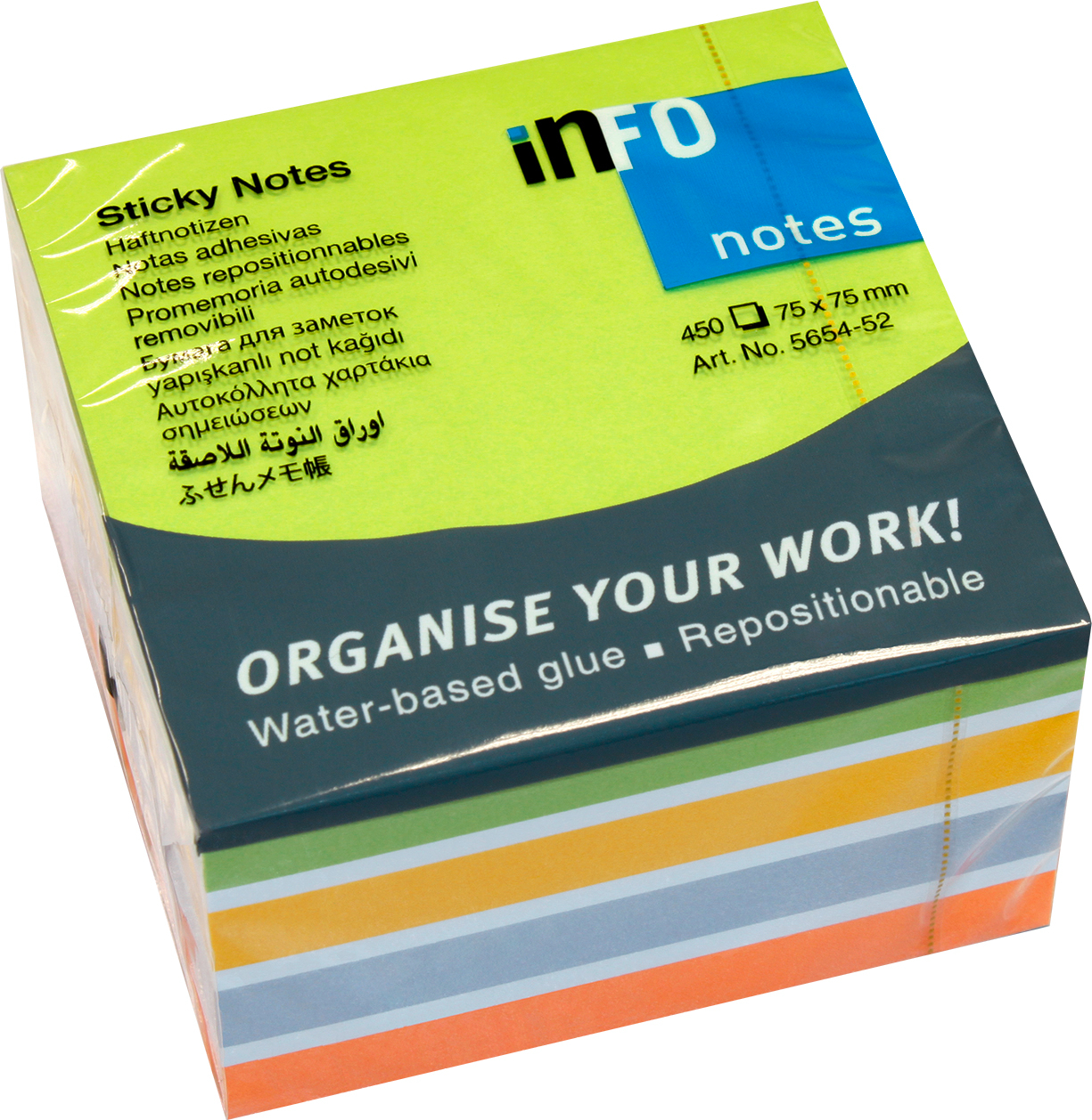 INFO Haftnotizen Cube 75x75mm 5654-52 ass. 450 Blatt