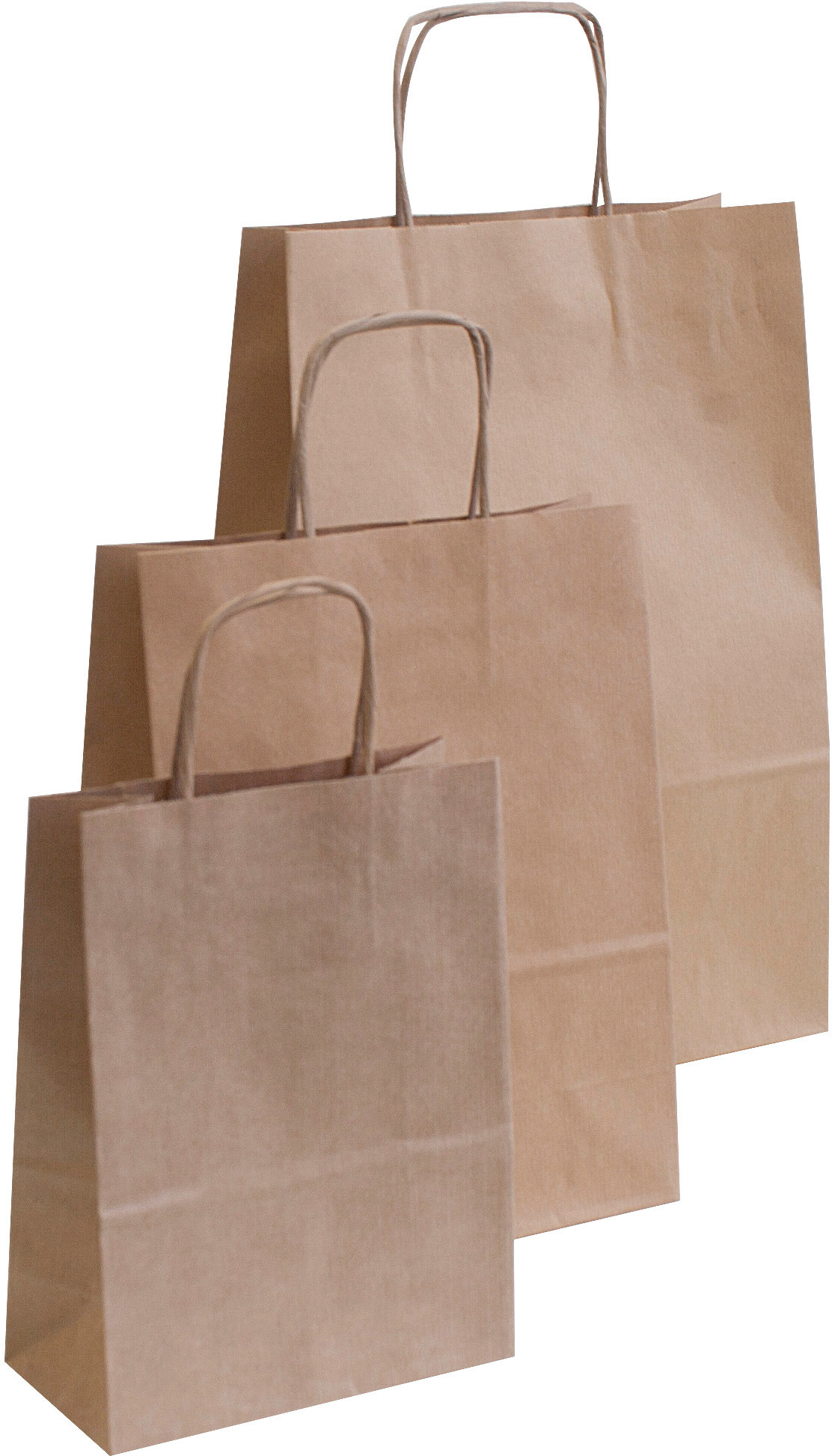Kraftpapier-Tragetasche mit passenden gedrehten Papierkordeln als Henkel, 110gm2 - besonders robust und strapazierfähig - wiederverwertbar - 100% recyclebar