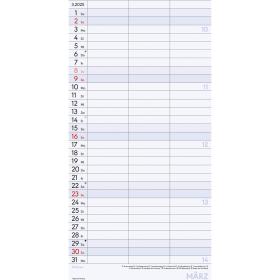 Das übersichtliche Kalendarium mit 3 Spalten zum Eintragen bietet viel Platz für Termine und Notizen.