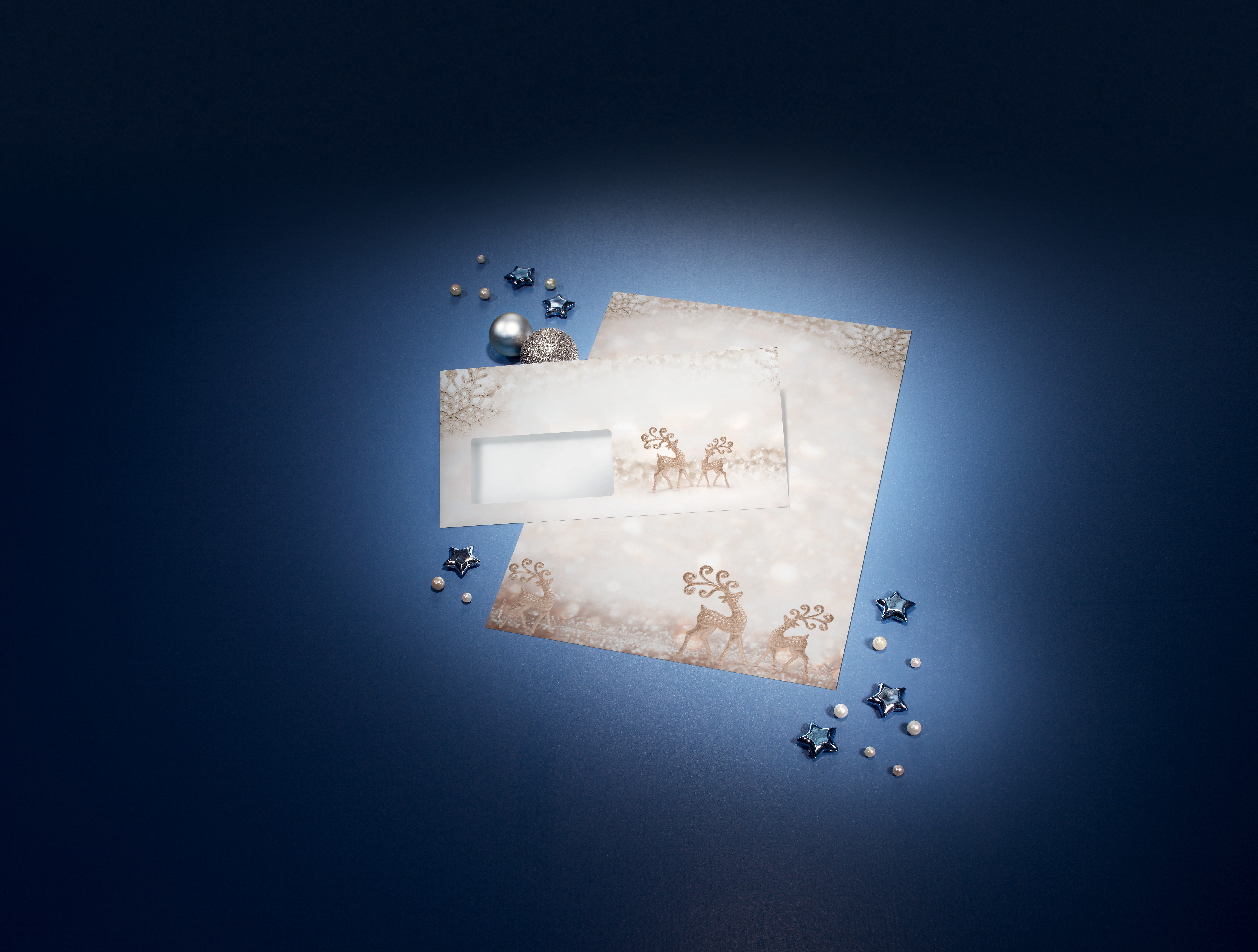 Versenden Sie Ihre Weihnachtswünsche in diesem hochwertigen Umschlag mit weihnachtlicher Pergamentrolle als Motiv.