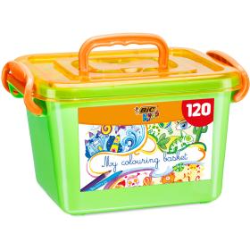 Mit der praktischen, wiederverwendbaren BIC Kids Malkiste können Kinder verschiedene Kombinationen und Maltechniken ausprobieren. Unter den 60 Faserstiften und 60 Buntstiften findet mit Sicherheit jeder sein Glück. Die 60 BIC Kids Kid Couleur Filzstifte haben druck- und biegeresistente Spitzen und leicht auswaschbare Farben. Die 60 BIC Kids Tropicolors Buntstifte sind echte Klassiker und ideal für kleine Kinder. Ihr Kunstharz-Schaft ist holzfrei, kann also garantiert nicht splittern. Die hochpigmentierten Minen sorgen für ausgezeichnete Leucht- und Deckkraft auf den meisten Oberflächen. Freuen Sie sich auf schöne Bilder!
