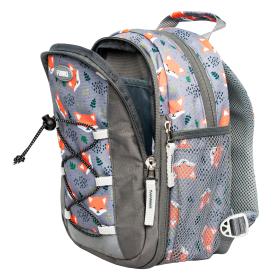 Individuelle, kinderleichte Volumenanpassung. Super Leichtgewicht. Höhenverstellbarer Brustgurt. Reflektierende Elastik-Kordel zur Befestigung von Jacke, Pulli, etc.. Sicherheits-Reflektoren. Extra weich gepolsterte Trageriemen. Grosses Hauptfach. Zwei praktische Aussentaschen. Zwei seitliche Netztaschen. Praktischer Tragegriff.