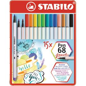 STABILO Fasermaler Pen 68 Brush 568/15-32 ass. 15 Stück Metalletui 446841-ITC