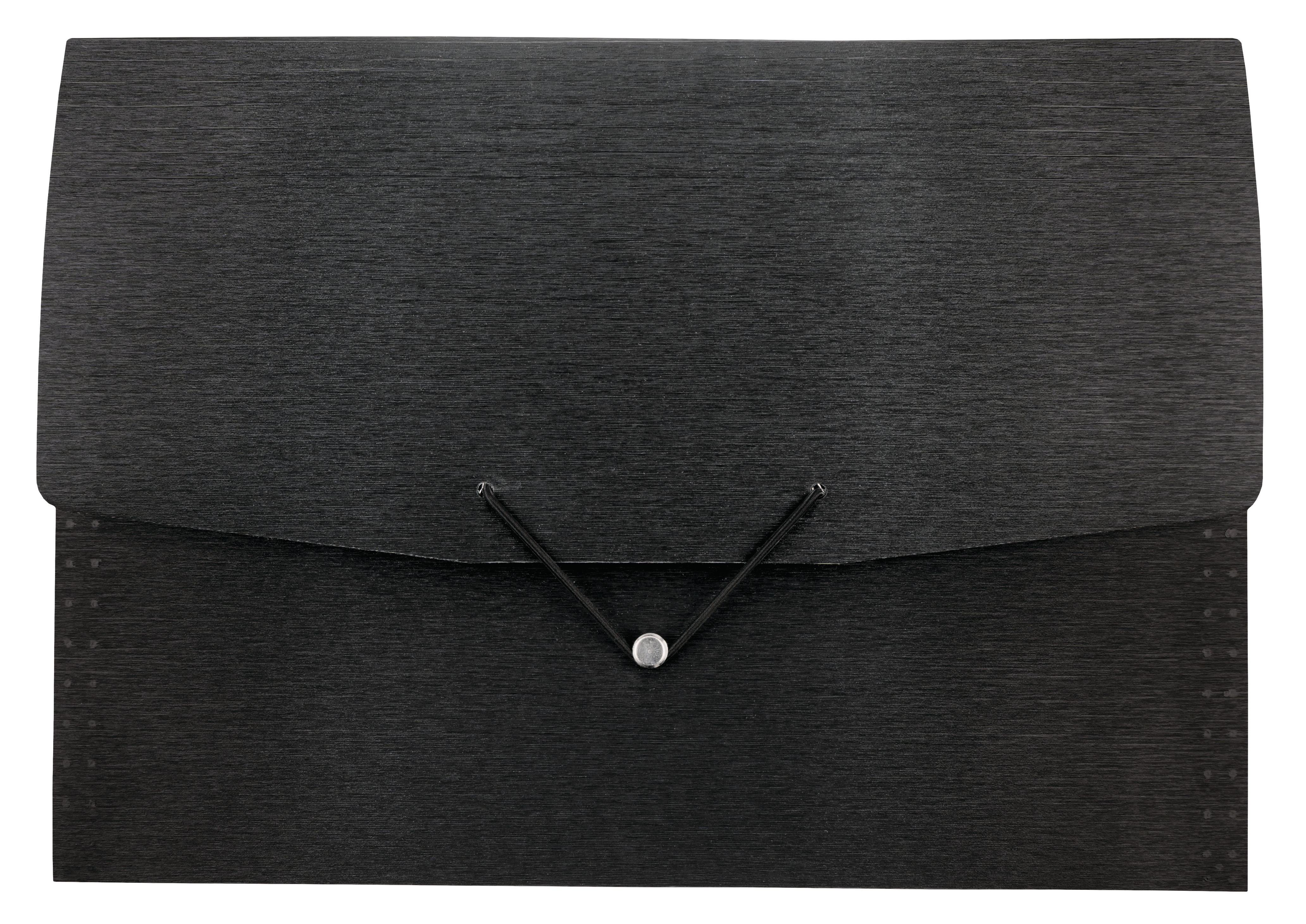 • Damit die Dokumente beim Transport nicht rausrutschen, wird die Fächermappe durch ein Elastband verschlossen.