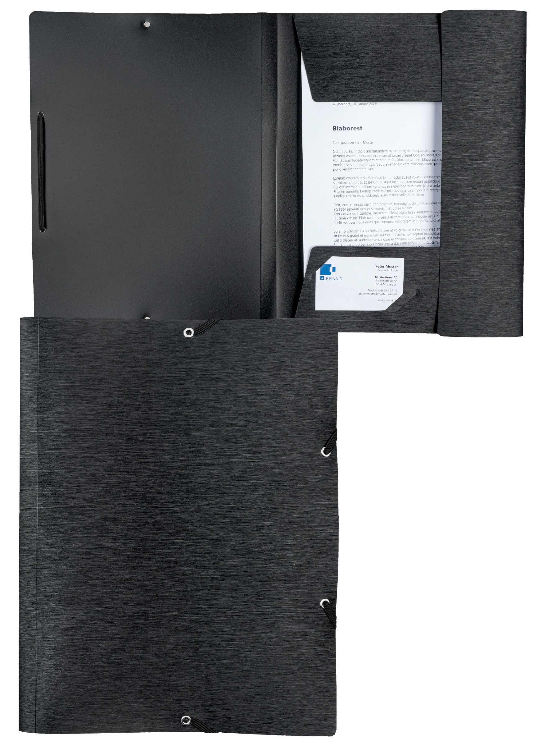 Recycling kann so schön sein! Diese Gummizugmappe ist aus 100% rezykliertem Post Consumer Abfall von PP Bechern. Dennoch besticht es mit seiner edlen Optik und Haptik. Unser LineaVerde Material ist 8 Mal nachhaltiger als Papier. Zudem ist PP zu 100% rezyklierbar. Die Gummizugmappe ist ideal für die Ablage von Dokumenten bis Format A4. Das Elastband verhindert das Herausrutschen des Inhaltes. Dank der grossen Innenöffnung können die Unterlagen leicht eingefüllt werden. Inklusive Perforation für Visitenkarten.
