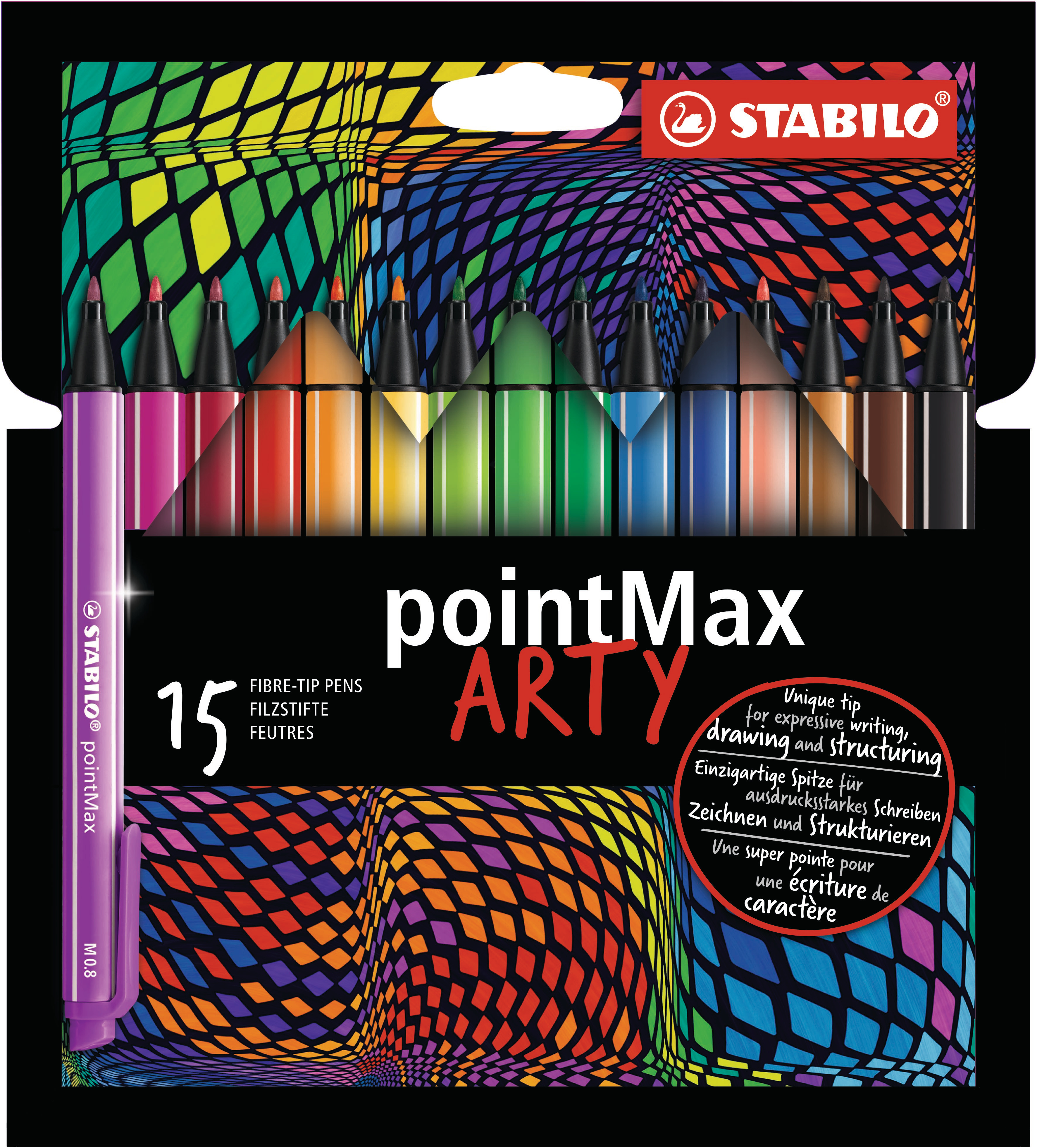 Premium-Fasermaler STABILO® Pen 68 - Das 25er Rollerset im stylischen ARTY Look (Limited Edition). So begehrt wie nie. Premium-Fasermaler STABILO Pen 68 - Farbvielfalt trifft Qualität. Ein Fasermaler für Schüler und Studenten sowie professionelle Nutzer im Büro und ambitionierte Hobbykünstler. Die auf Wasser basierende geruchsneutrale Tinte lässt sich auch mit Wasser vermalen. Das gibt interessante Effekte und erlaubt auch Farbüberläufe. Die spezielle M-Spitze ist formstabil, lässt sich nicht eindrücken und ist vor Austrocknung geschützt.