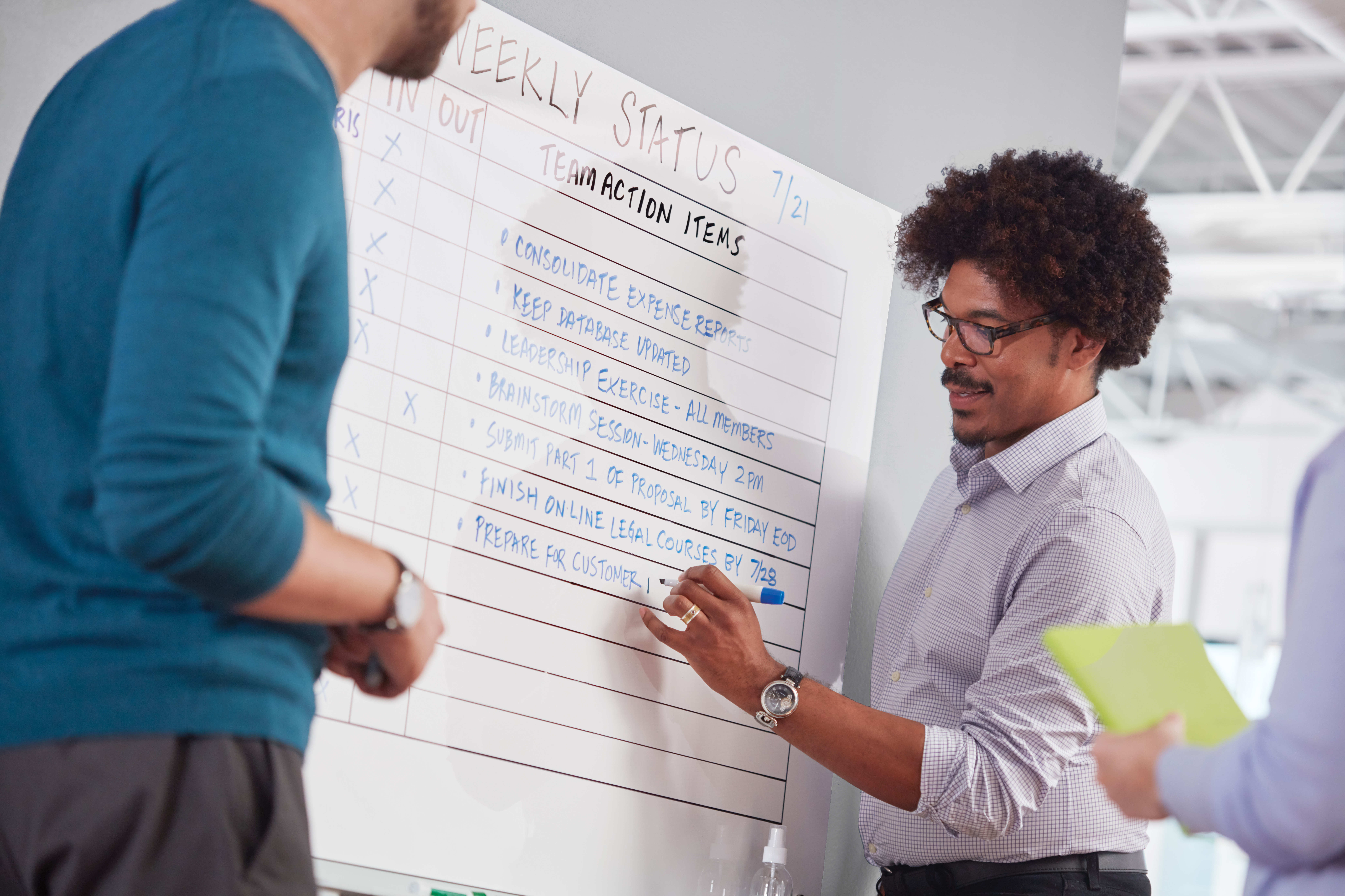 Post-it® Flex Write Surface gibt Ihnen die Flexibilität, Ihre Arbeitsfläche sofort in ein Whiteboard zu verwandeln und die Freiheit, selbst mit einem Permanentmarker fleckenfrei zu schreiben.