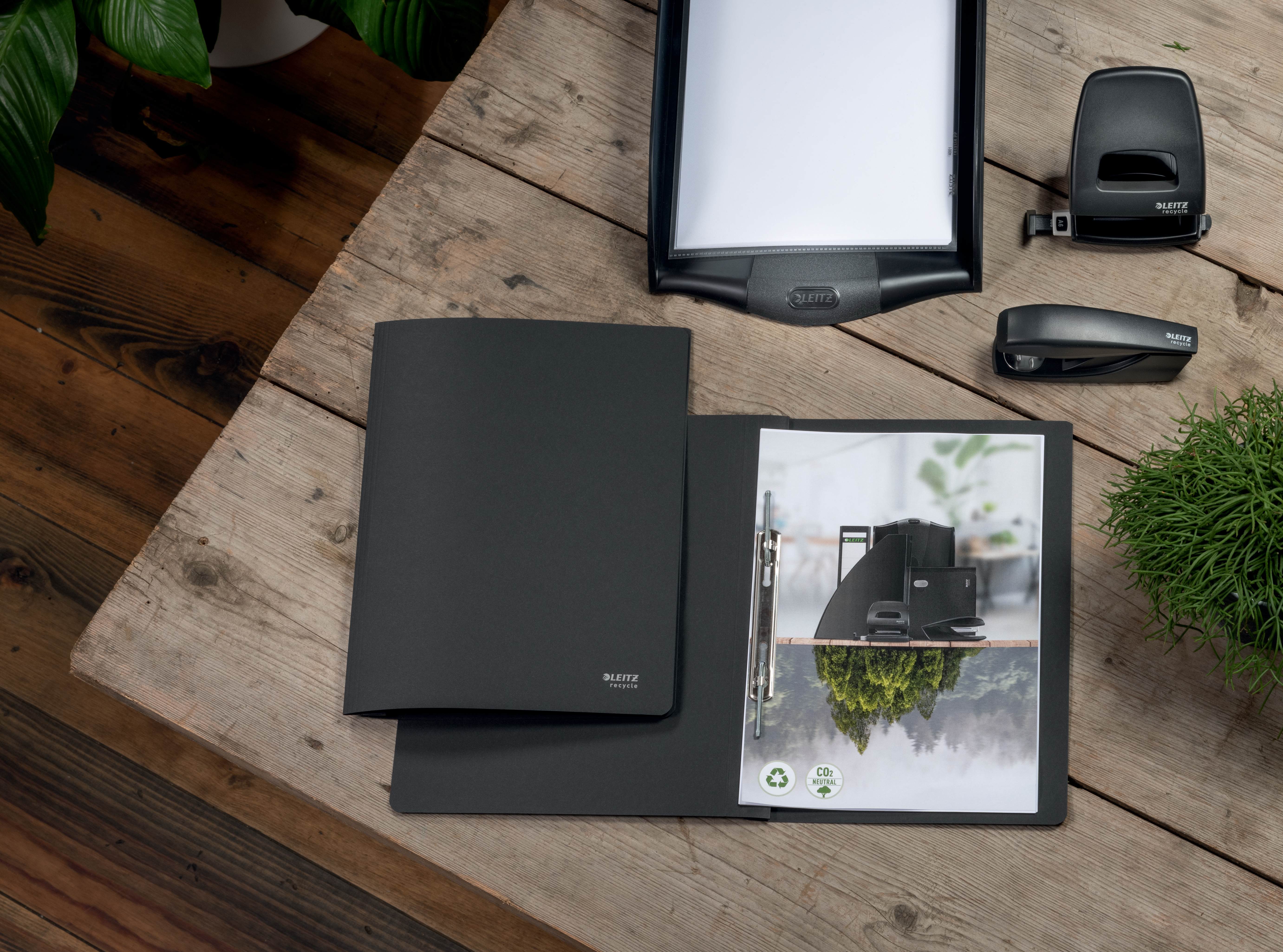 - Der Spiralhefter besteht aus 100% recyceltem Post-Consumer-Karton und ist zu 100% recycelbar. Hergestellt aus sehr stabilem 430 g/m² Karton, dadurch langlebig und für Wiederverwendung geeignet