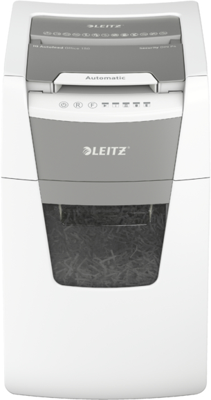 Vollautomatischer Aktenvernichter von Leitz mit einzigartiger Funktion für sauberes Entleeren des Abfallbehälters. So intelligent, dass er komplett selbständig arbeitet. Legen Sie einfach Ihren Papierstapel (inkl. Heftk- und Büroklammern) ein, schliessen Sie den Deckel und beginnen Sie Ihren Tag. Ideal für den Einsatz in Büros. Vertrauliche Sicherheit und hervorragende Leistung mit diesem papierstaufreien, leisen und lang laufenden (30 Minuten) Autofeed-Aktenvernichter. Schreddern Sie automatisch 150 A4-Blätter in Sicherheitsstufe P4 kleine Partikel (4 x 28 mm) auf einmal in den grosszügigen 44 Liter Behälter. Einfach und intuitiv zu bedienen dank Touch-Control.