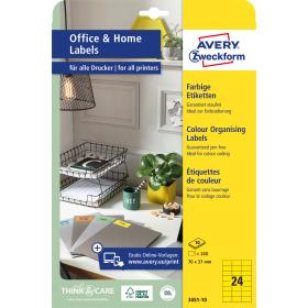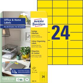 Qualität vom Etiketten-Experten: die gelben, permanent haftenden Etiketten 3451-10 im Format 70 x 37 mm von Avery Zweckform eignen sich z.B. für eine thematische Farbcodierung Ihrer Dokumente. Kleinpackung mit 240 Etiketten auf 10 Bogen, ideal fürs Home Office. Farbige Etiketten für jeden Bedarf mit einem gestochen scharfen Druckbild ohne Verwischen durch beste Toner- und Tintenverankerung. Sie können sich auf einen absolut staufreien Druckerdurchlauf ohne Klebstoffablagerungen im Drucker verlassen. Geeignet für alle Laser- und Inkjet-Drucker. So arbeiten Sie effizient wie stressfrei und schaffen sich wertvolle Zeit für die wirklich wichtigen Dinge. Ideen drucken, einfach & professionell: mit Etiketten von Avery Zweckform können Sie den kostenlosen Online Etiketten-Designer unter www.avery.eu/print nutzen. Gestalten Sie Ihr Etikett mit der Software komplett selbst, verwenden Sie eine der Design-Vorlagen zu zahlreichen Themen, die Sie individuell anpassen können oder laden Sie Ihr fertiges Design hoch und drucken anschliessend standgenau aus. So schnell und einfach sorgen Sie für einen professionellen Auftritt. Think & Care - Avery Zweckform ist seit 2020 klimaneutral: die Treibhausgasemissionen des Standortes werden durch zertifizierte Klimaschutzprojekte ausgeglichen. Schon seit 2014 wird ausschliesslich Ökostrom/-gas verwendet. Forschung, Entwicklung, Produktion, Logistik und Verwaltung am Firmenstandort in Oberlaindern/Bayern garantieren höchste Qualitäts- und Umweltstandards sowie kurze Lieferwege. Das Obermaterial dieser chlorfrei gebleichten Etiketten wird zu 100% aus FSC®-zertifiziertem Papier aus verantwortungsvoll bewirtschafteten Wäldern hergestellt.