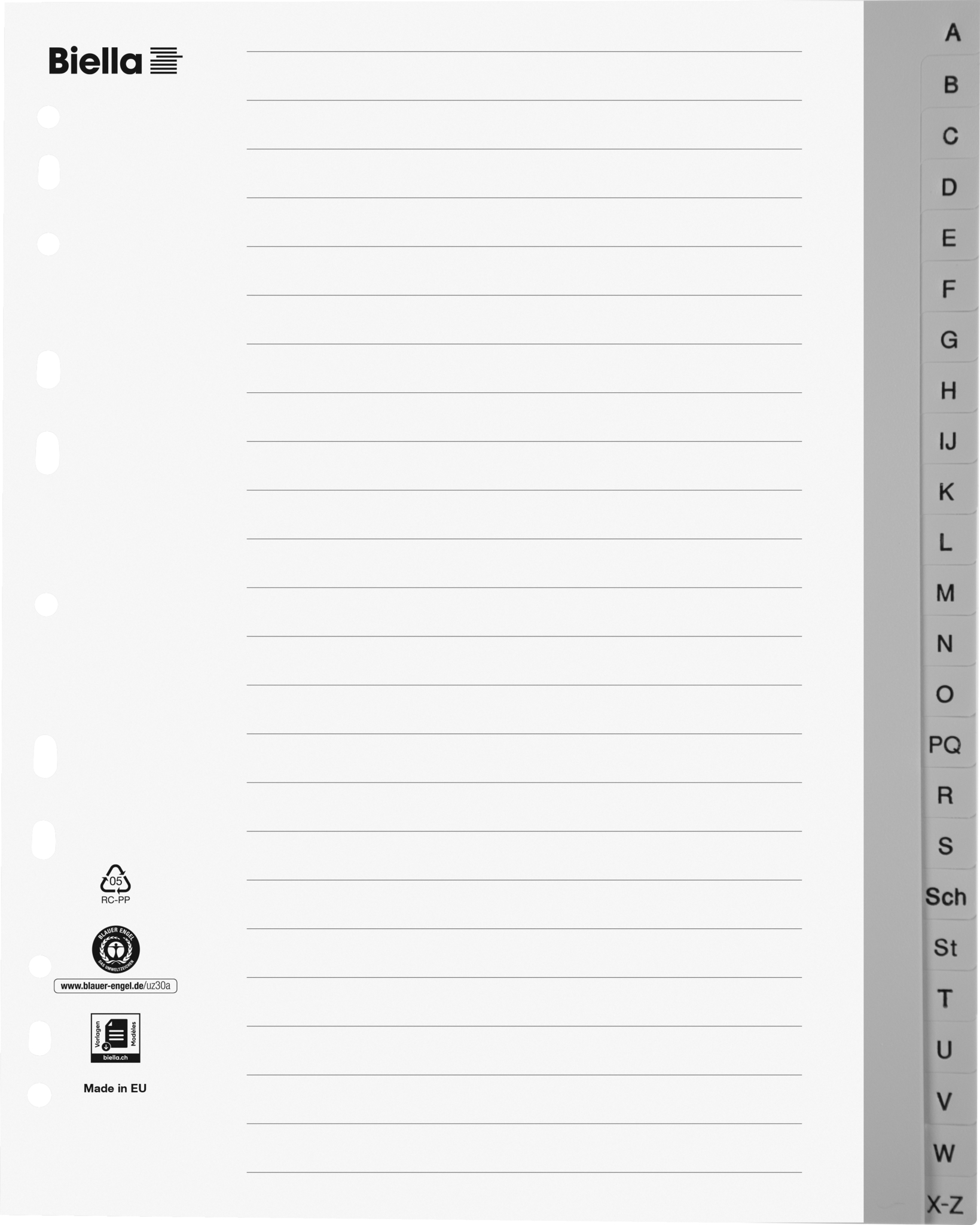 Suchen::450264 BIELLA Register PP A4 47842400U grau 24 teilig A Z