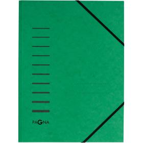 Spannmappe, für Dokumente im Format A4, grün, aus strapazierfähigem Pressspan, mit schwarzem Eckspanngummi für sichere Aufbewahrung ungelochter Unterlagen, mehrere Falzungen zur Anpassung an Füllmenge, Beschriftungsfeld für individuelle Kennzeichnung