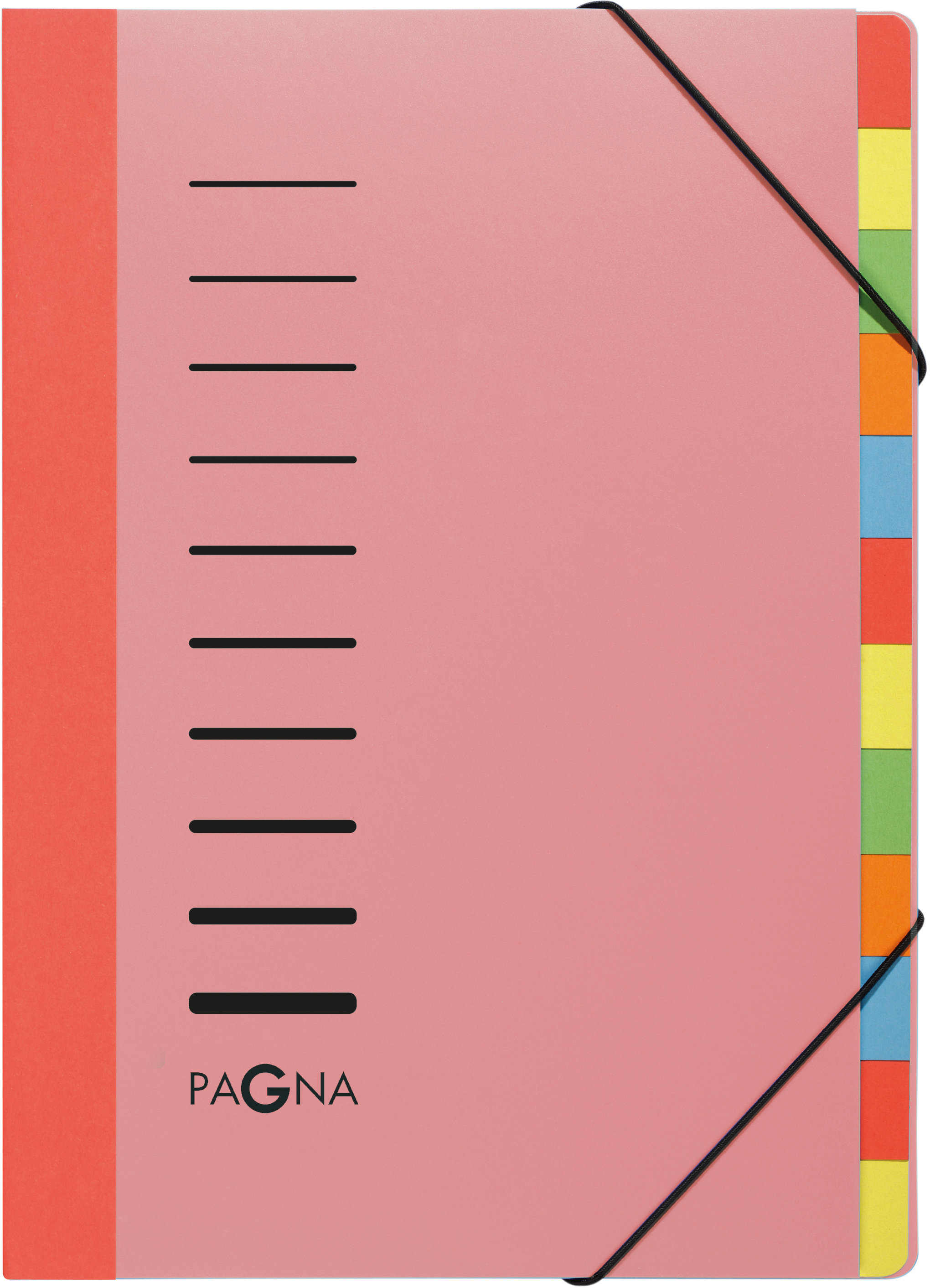 Deskorganizer, für Dokumente im Format A4, 12 Fächer, Trend, transparent, mit Umschlag aus langlebigem PP, schwarzem Eckspanngummi, dehnbarem Rücken für besonders hohes Füllvermögen, stabilem farbigen Griffregister aus Karton (RC) für schnellen Zugriff auf Unterlagen, Deckblatt individuell beschriftbar