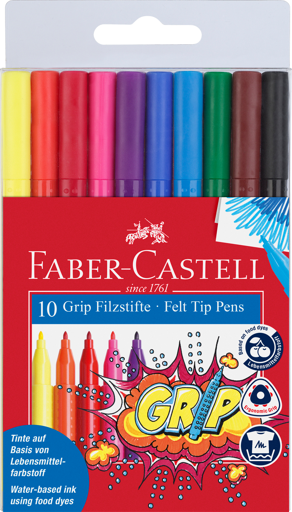 Die GRIP Colour Marker besitzen die ergonomische Dreikantform und die Noppen-Oberfläche für sicheren Halt. Wichtig für die Kinder und Jugendlichen: die Fasermaler halten sehr lange und haben eine formstabile, robuste Spitze. Die Farben leuchten sehr intensiv.