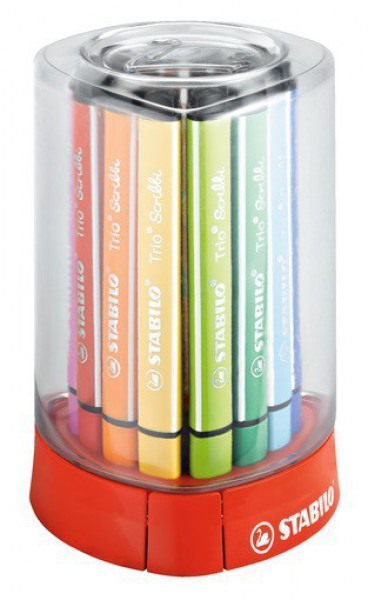 Wir haben uns viel Mühe gegeben und den kleinen Malern ganz genau auf die Finger geschaut, um die besonderen Bedürfnisse, Angewohnheiten und Bewegungsabläufe von Kindern kennenzulernen. Herausgekommen ist das STABILO Trio Scribbi Etui, mit nahezu unverwüstlichen Stiften in Dreikant-Form mit gefederter Spitze. Und landet die Tinte mal abseits des Malblocks lässt sich diese ganz einfach wieder rauswaschen.