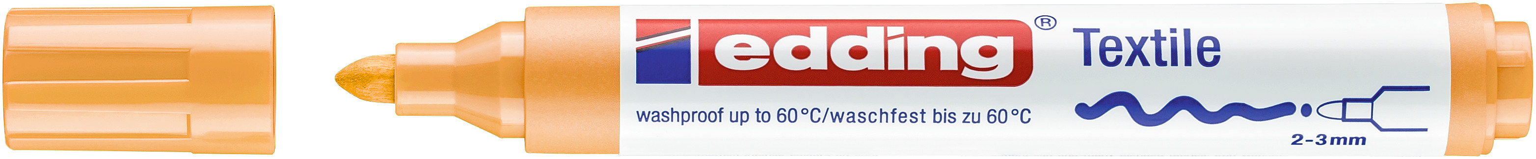 Dieser Textil-Marker ist der ideale edding für das Beschriften und Bemalen von hellen Textilien. Sie möchten lustige Zeichnungen auf Kinder-T-Shirts anfertigen? Als „Glückwunschkarte“ zur Geburt einen Baby-Body signieren? Dekokissen bemalen oder einen alten Stuhlbezug aufpeppen? Solche und viele andere schöne Ideen lassen sich mit diesem Textil-Marker auf chemisch unbehandelten Stoffen mit Leichtigkeit umsetzen. Mit diesem Textil-Marker gelingen Ihre eigenen Werke ganz einfach – denn seine wassergelöste, geruchsneutrale Tinte verläuft nicht bei der Verarbeitung und trocknet schnell. Nachdem Sie den Stoff bemalt haben, lässt sich die aufgetragene Farbe durch einmaliges Bügeln (ohne Dampf) fixieren – und ihr Werk wird bis zu 60°C waschbeständig. Die 2 bis 3 Millimeter breit malende Faserspitze des Textil-Markers ist sehr stabil und langlebig.