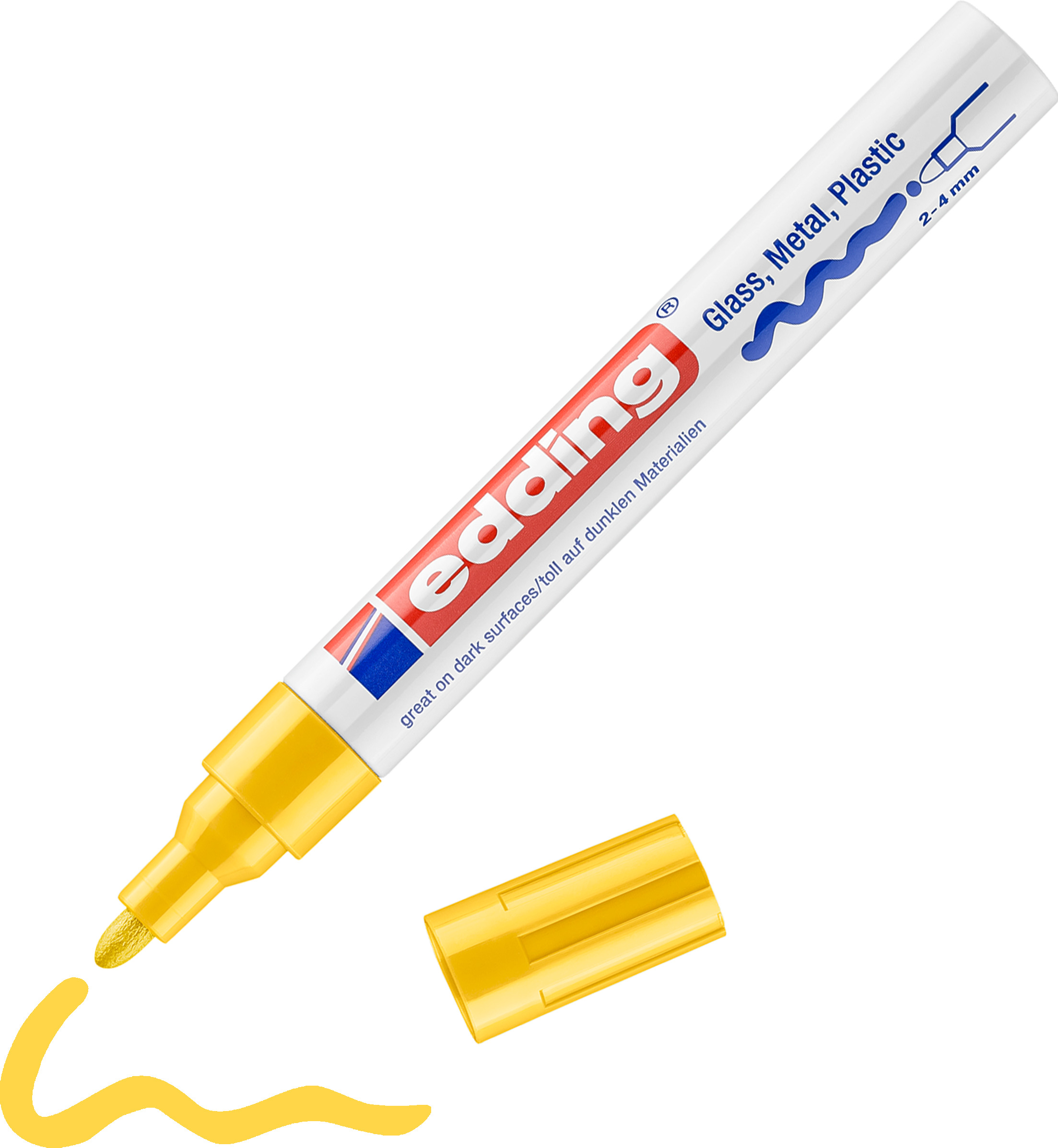 EDDING 750 - der Lackmarker mit einer sehr hohen Hitzebeständigkeit! Für dauerhaftes Beschriften auch von dunklen und transparenten Materialien wie z.B. Metall, Glas, Kunststoff geeignet! Wasserfest, hitzebeständig bis 400 °C, lackartig deckend, geruchsarm und extrem lichtbeständig.