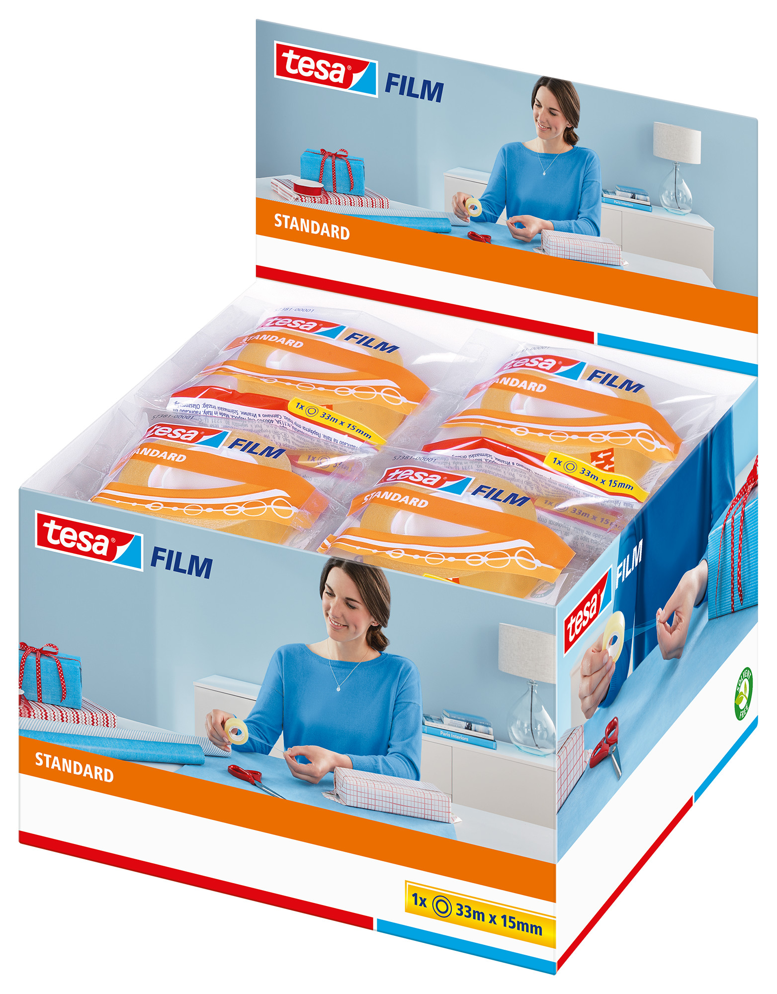 Transparent, gute Klebkraft, leicht von Hand einreissbar, PP-Folie.
