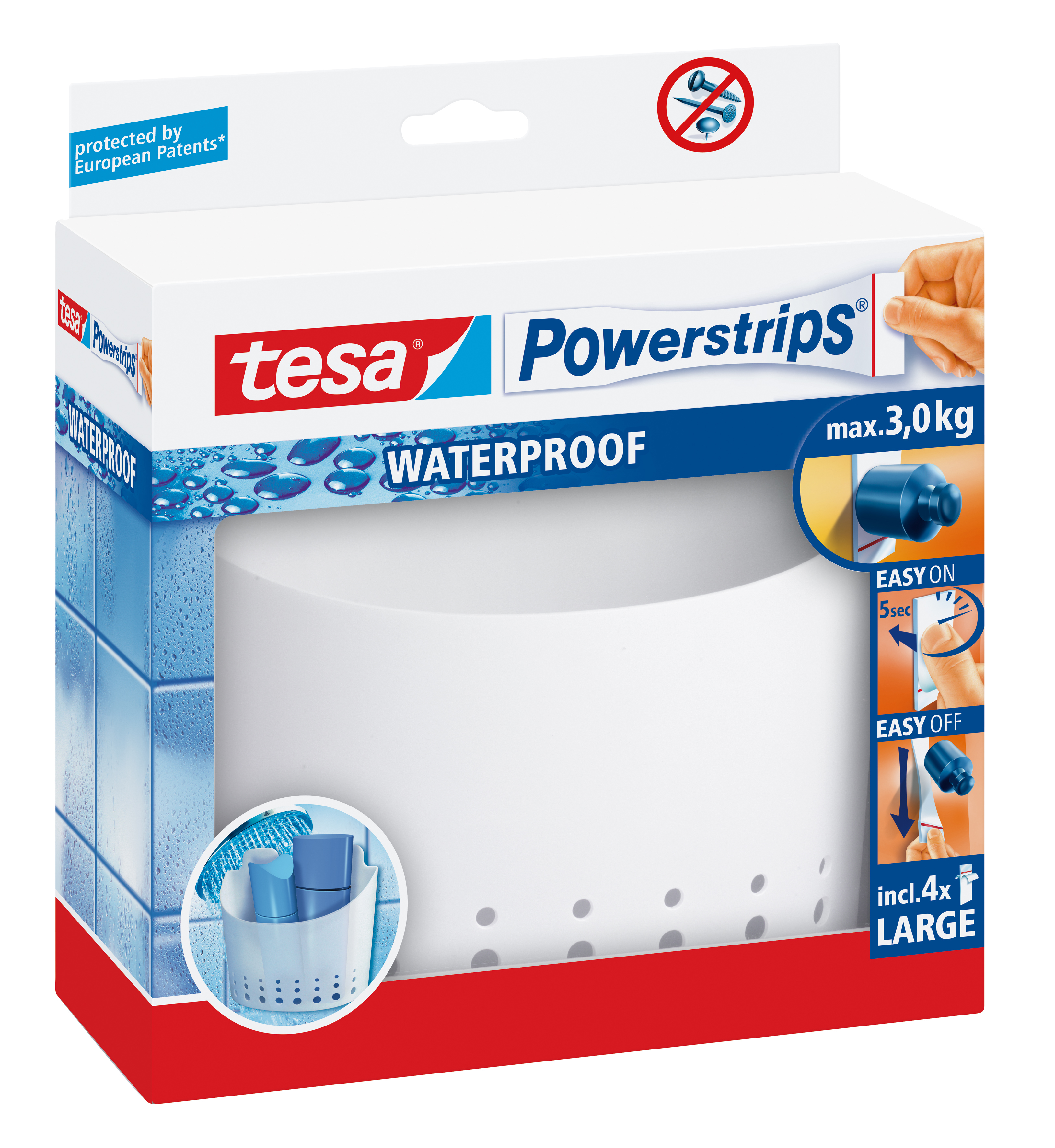 Die tesa Powerstrips® Waterproof Körbe wurden speziell für die Aufbewahrung von Duschgel, Shampoo und anderen Badutensilien entwickelt. Sie eignen sich ebenfalls für den Einsatz in der Küche, für Spühlmittel und Küchenschwämme. Dank der tesa Powerstrips® ® Technologie können sie bei Bedarf einfach und spurlos wieder abgelöst werden.