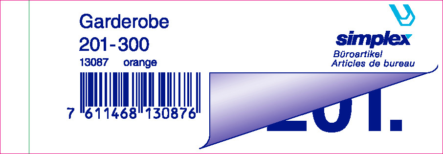 SIMPLEX Garderobenblock 201-300 13087 orange 100 Blatt