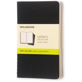 Die Moleskine Cahier-Notizhefte haben einen stabilen Einband aus schwarzem Karton mit sichtbarer Fadenheftung. Die letzten 16 Seiten sind heraustrennbar, mit einer grossen Innentasche für lose Zettel und einem Text zur Geschichte von Moleskine. Blanko, säurefreies Papier. 3er-Set.