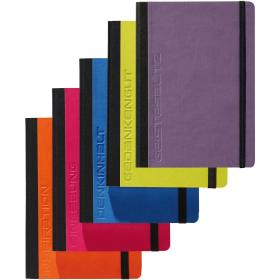 Notizbuch A5, Trend, 5 Farben, 192 Seiten, blanko Papier, mit praktischem schwarzen Gummizugverschlus, hochwertiger Blindprägung Inspiration / Eingebung / Denkinhalt / Gedankengut / Geistesblitz, langlebigem schwarzen Geweberücken