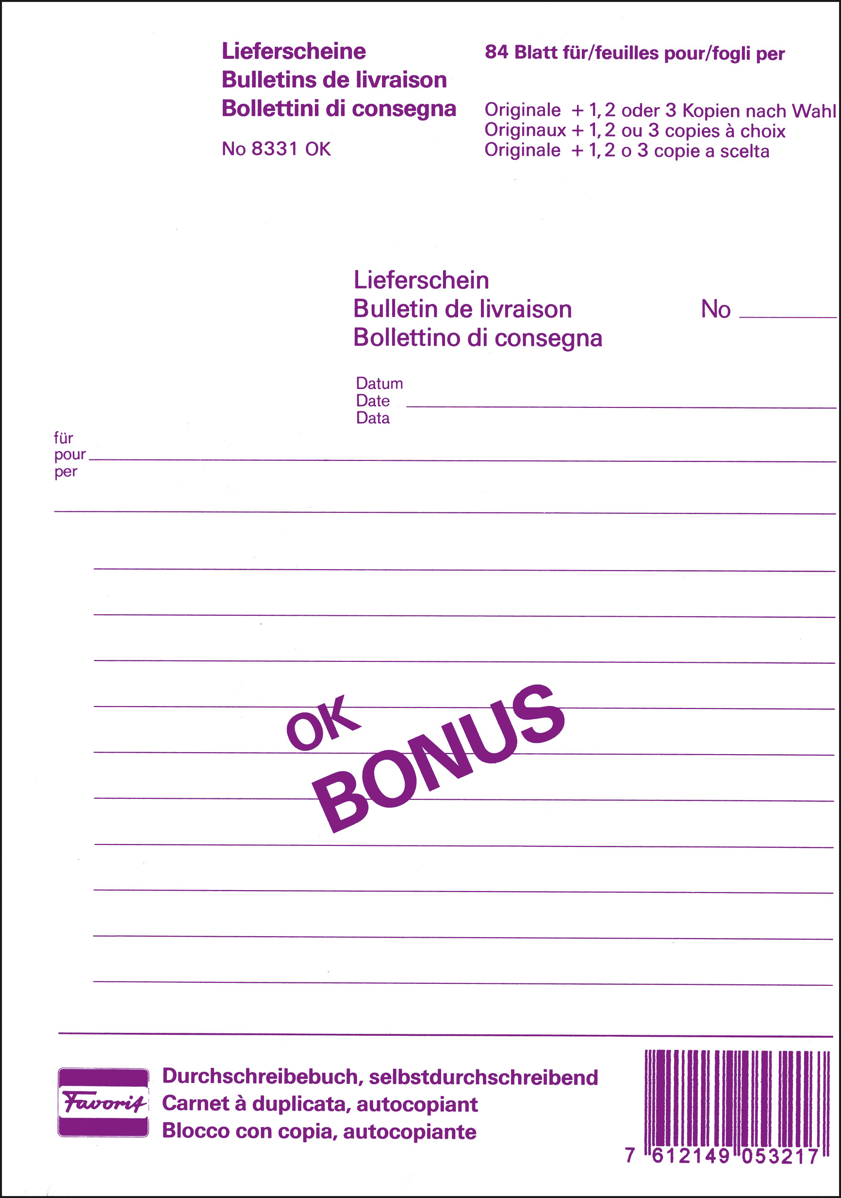 Lieferscheine OK-BONUS 3-sprachig D/F/I